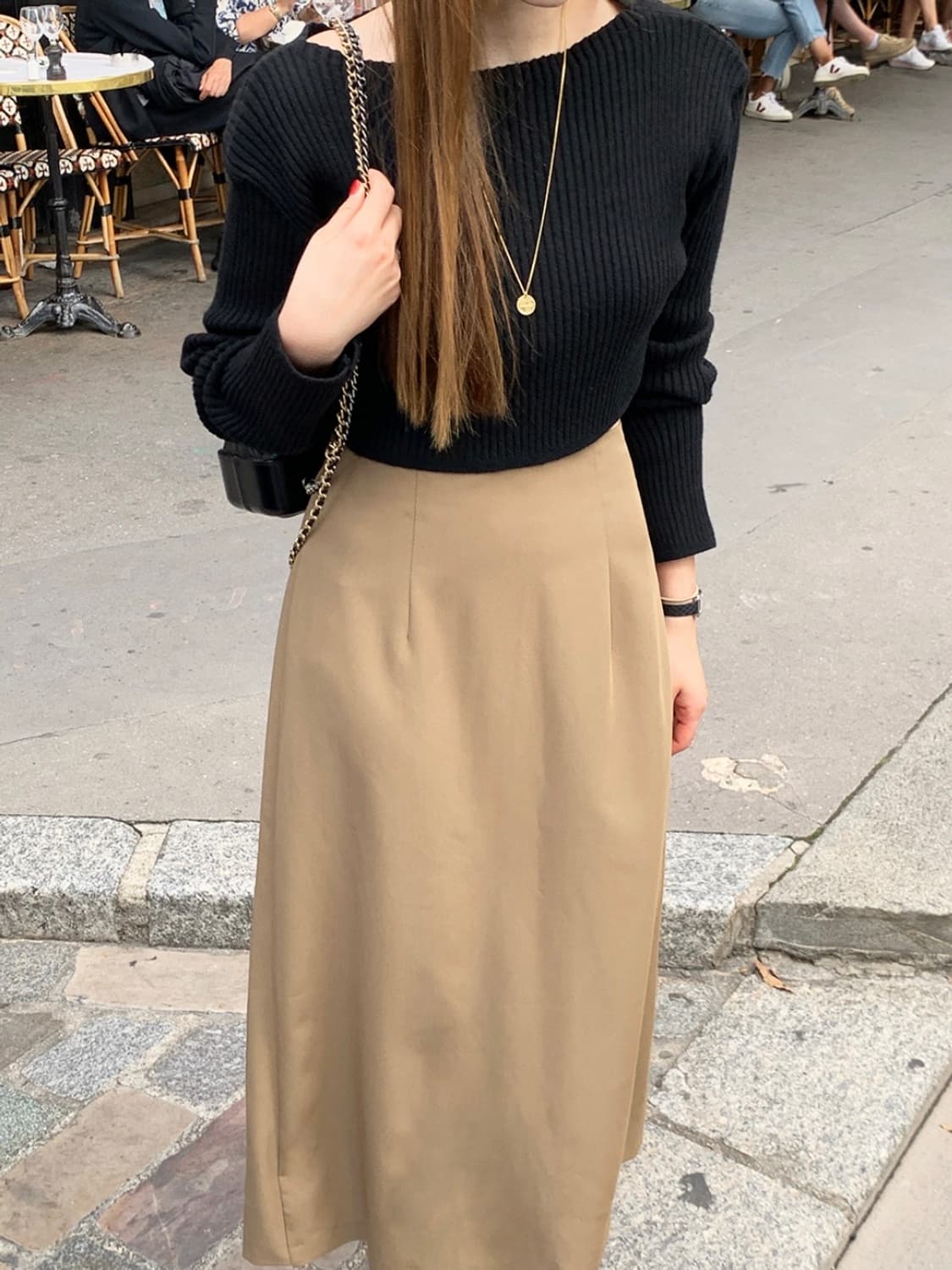 차분한 베이지톤 롱 스커트입니다. 트렌디어패럴 제품이고 사이즈 m이라 바지사이드 26-28한테 예쁘게 잘 맞을 거 같아요. 상세사진은 톡주시면 보내드릴게요~