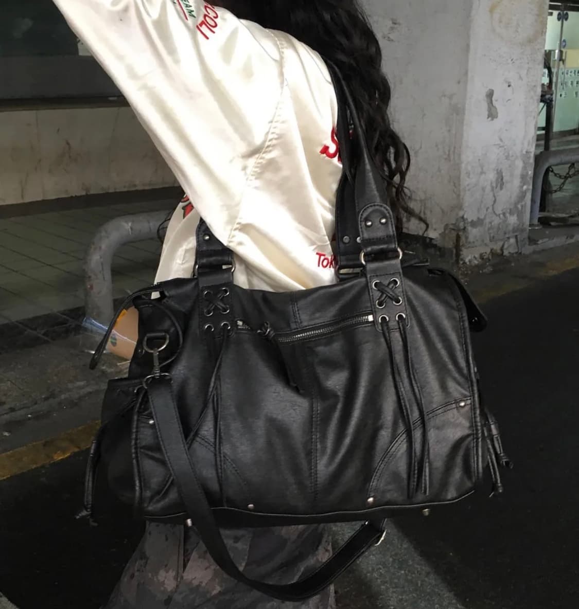 (구해요) 팬시클럽 빅 포켓 데님 숄더백 블랙