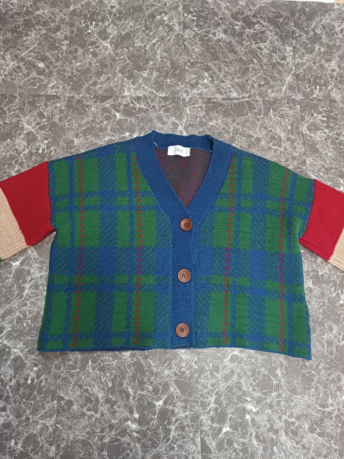 TWEE 멀티컬러 아가일 크롭 가디건 블루, 그린, 레드의 컬러 블로킹과 아가일 패턴이 어우러져 빈티지하면서도 힙한 분위기를 줍니다. 소매 끝의 베이지 배색까지 더해져 디테일이 멋스러운 제품입니다 평범할 수 있는 가디건을 크롭 기장과 화려한 배색으로 재해석해, 하나만 입어도 확실한 포인트가 되는 매력적인 제품입니다. 오버핏이라 체형커버되는 제품입니다