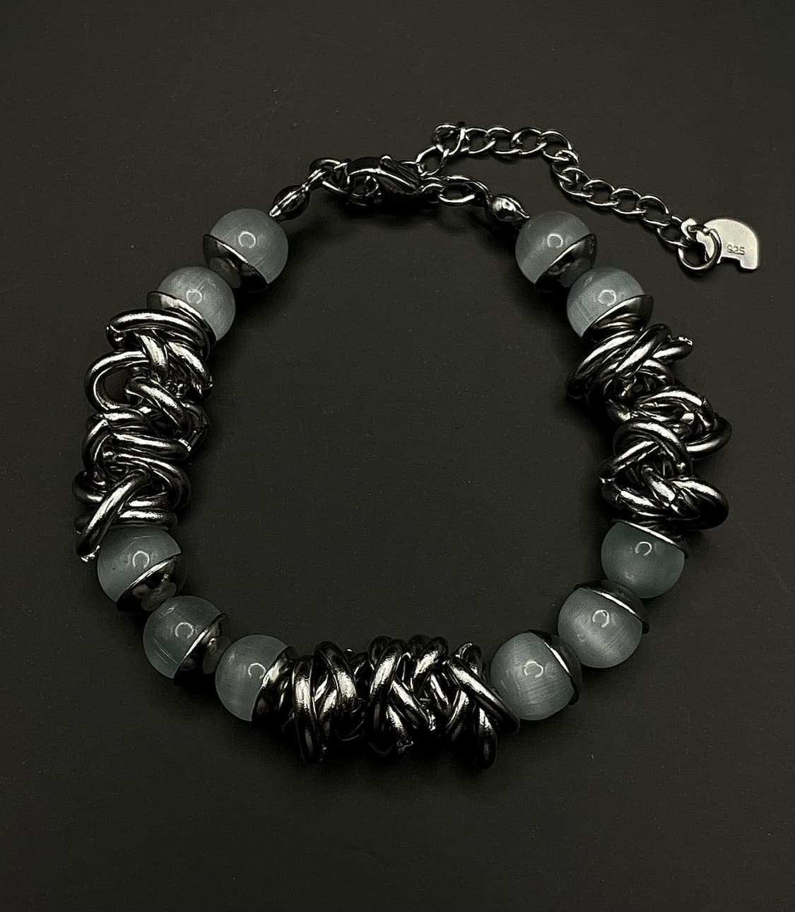 캬 이거지!!! 또다시돌아와버린 뜨거븐 대구에서의 차가븐 팔찌 2년전 그맛그대로 싸게 모십니다. 전역하고 와버린 주인장을 영광의 순간으로 보내 버립니다!!! <Product shot> (Sky gemstone twisted chain bracelet) Size: 약 16cm 연장 부분: 약 6cm material: Brass, Real stone, 뻘건 맛