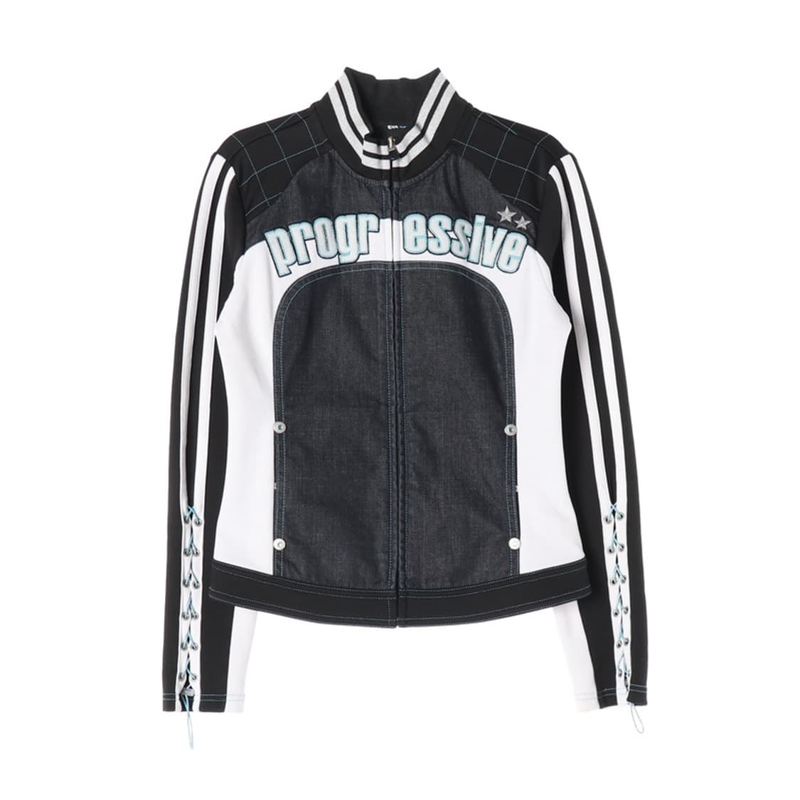 EXR 레이스업 소매 데님 배색 저지 자켓 S