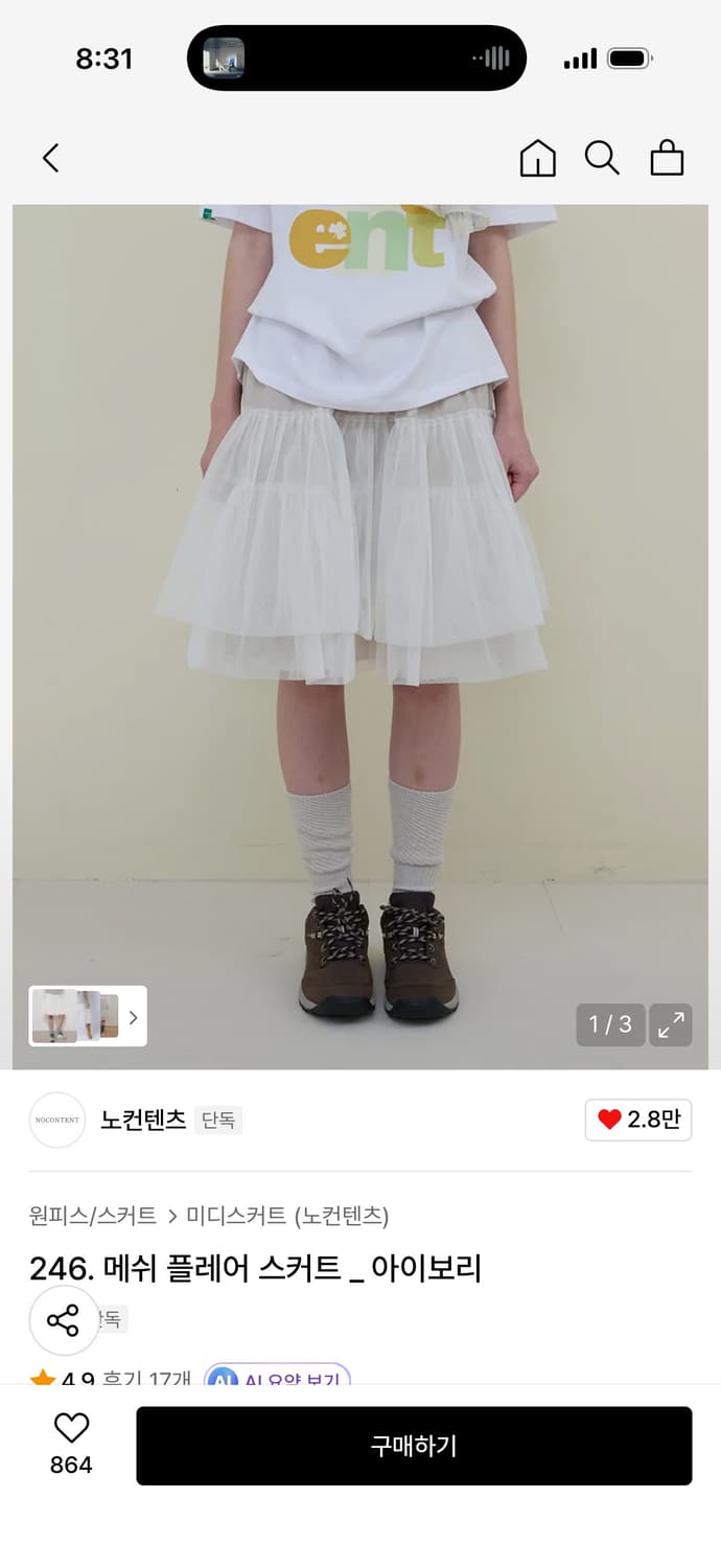 새상품 nocontent 노컨텐츠 메쉬 플레어 스커트 아이보리