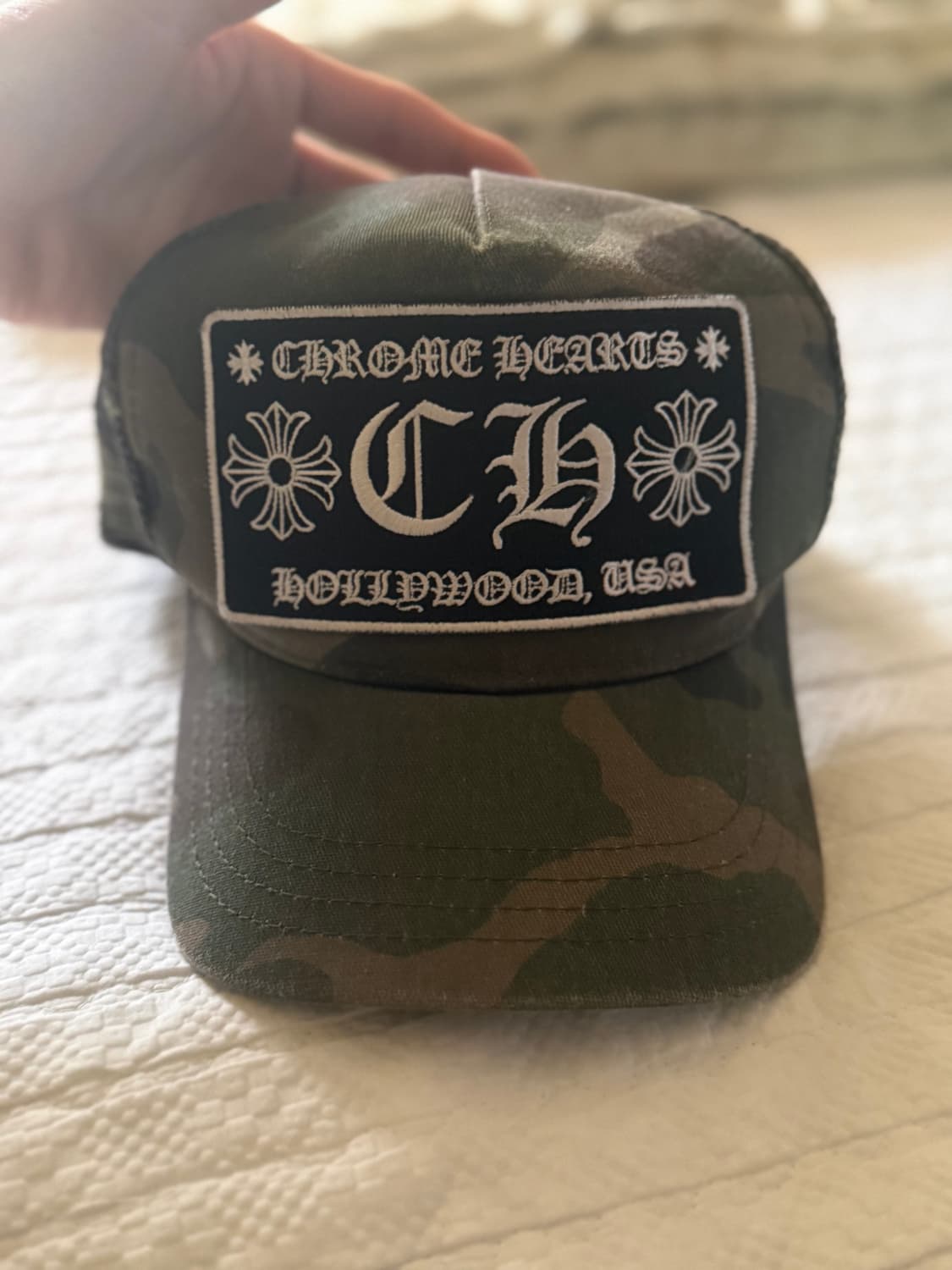 제품명 : 크롬하츠 ch 카모 트러커캡 구매처 : 크림앱에서 구매 사용감 : 사용감은 좀 있으나 애지중지 잘 써서 좋은 상태 유지중 또 세탁 단 1회도 x 크림에서 검수 받고 구매한 제품이기에 가품 걱정xx 100% 정품 가격인하 원하시던 분이 계시는데 5깎아서 올렸으니 이 이하 내릴 생각 없는점 참고 부탁드립니다