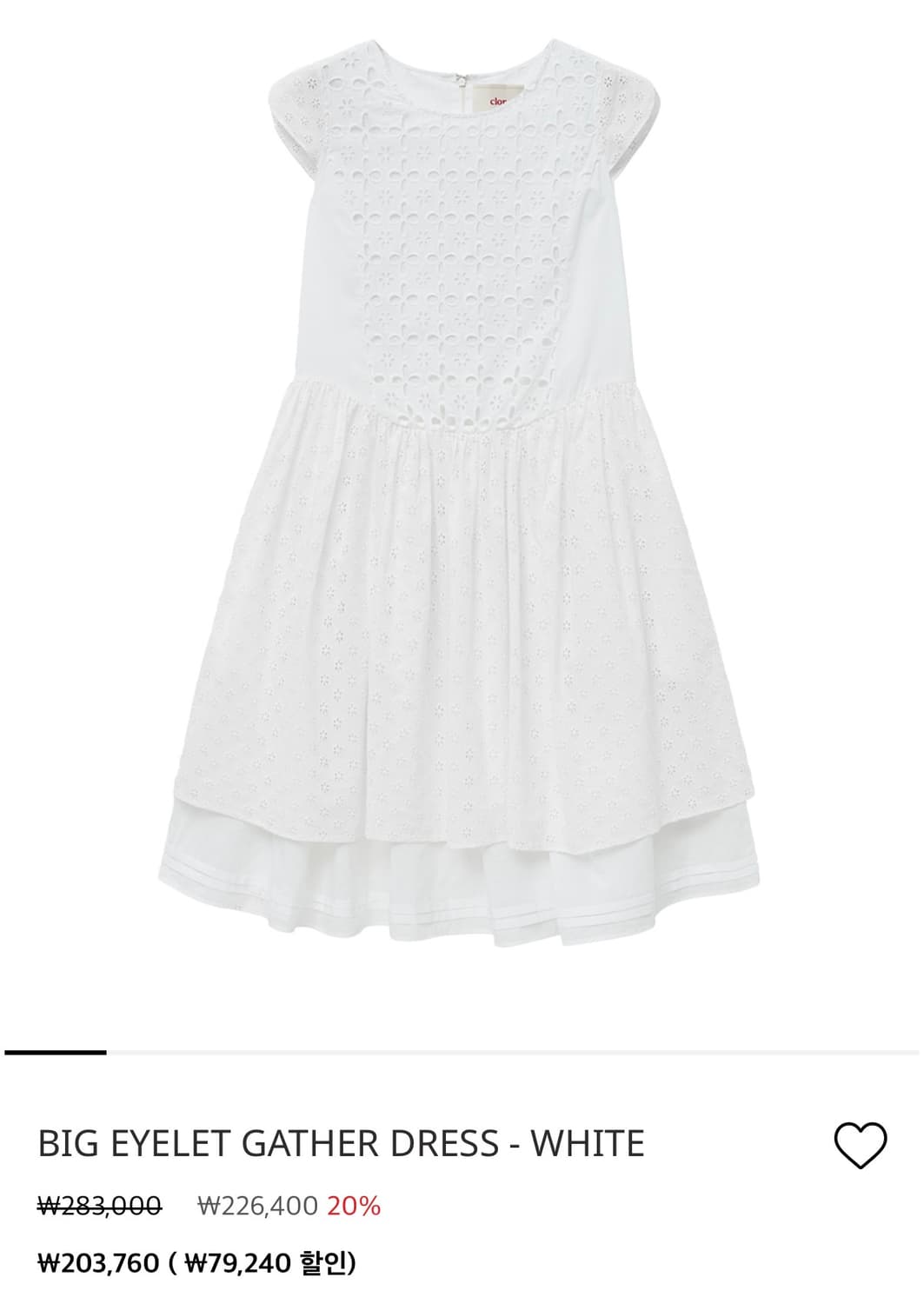 클로르 BIG EYELET GATHER DRESS - WHITE m사이즈 팝니다. 집에서 시착만 해본 새상품이에요..! 문의 없으시면 바로 결제해주시면 됩니다~