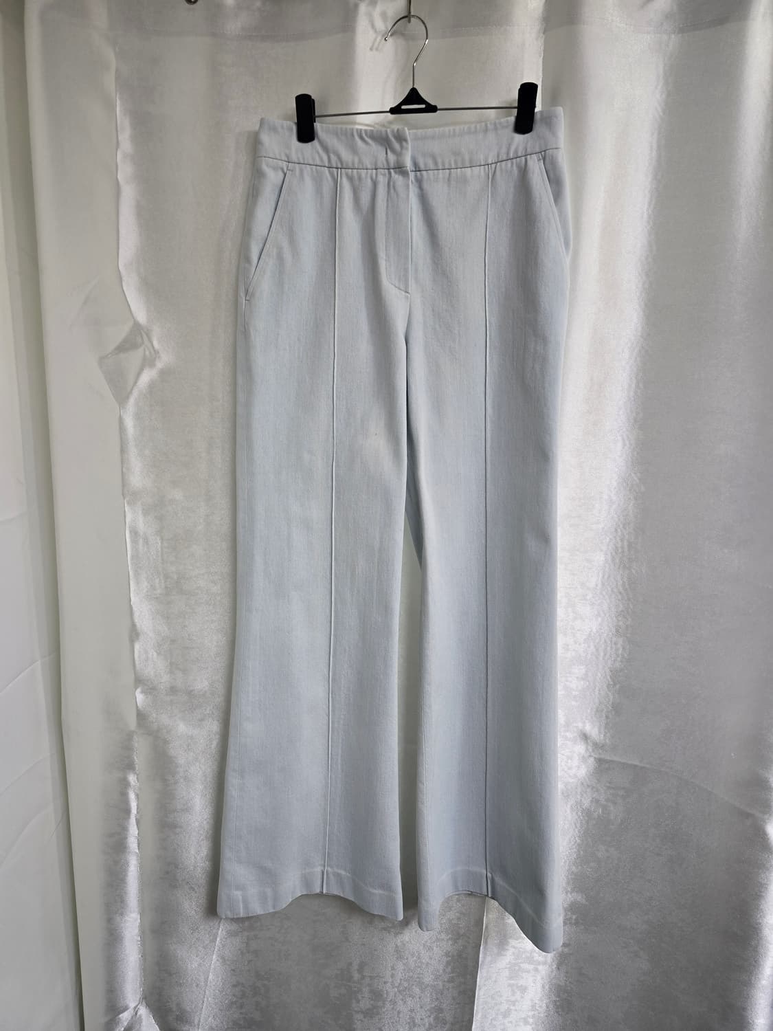 시스템 연청 데님 와이드 팬츠입니다. 은은한 연청 색상이 멋스러워요. 와이드한 핏으로 편안하게 착용 가능합니다. 허리 : 68cm 총장 : 102cm 허벅지통 : 27cm 밑단통 : 28cm 밑위 : 26cm