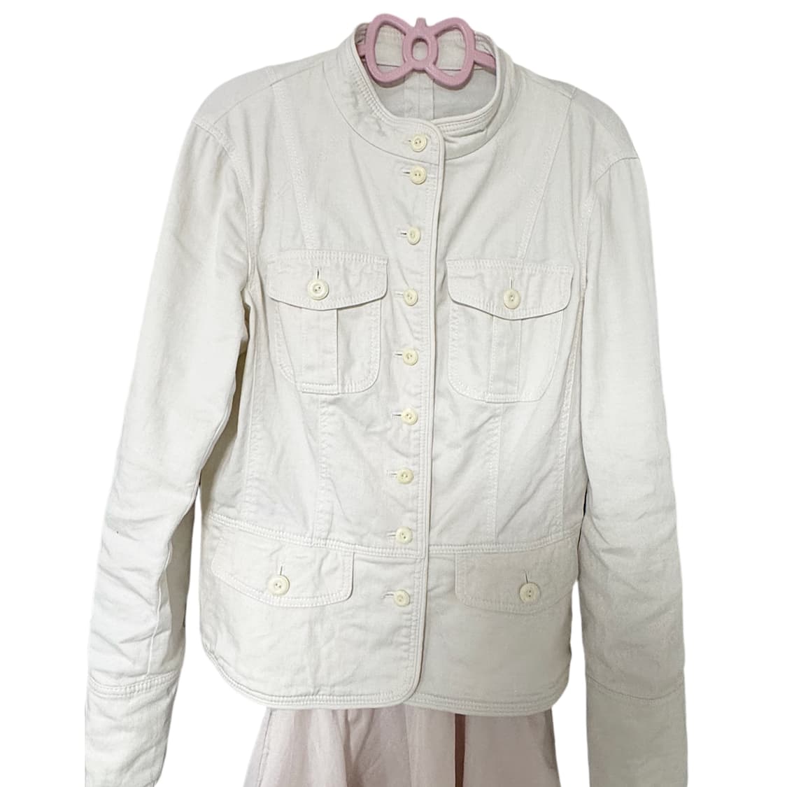 화이트에 아이보리 한 방울 섞인 따뜻한 색감입니다. 봄에 입기 좋고, 옷 컨디션도 좋습니다.