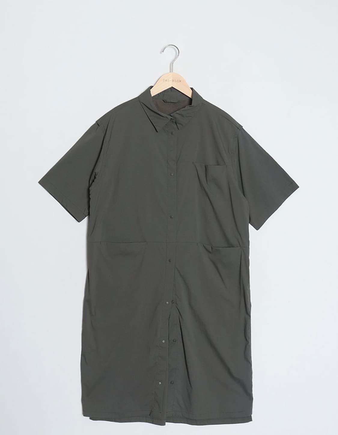 필드 코어 나일론 셔츠 원피스입니다. - 카키컬러, 부드럽고 신축성좋은 나일론 원단 - 히든 포켓 / 벤틸레이션 디테일 사이즈 : 실측 우먼 L 추천드립니다. 소재 : 나일론 95% / 폴리우레탄 5% 컨디션 : 전체적 좋은 컨디션입니다. 어깨 : 46cm 가슴 : 53cm 소매 : 26cm 소매+어깨 : cm 총기장 : 100cm