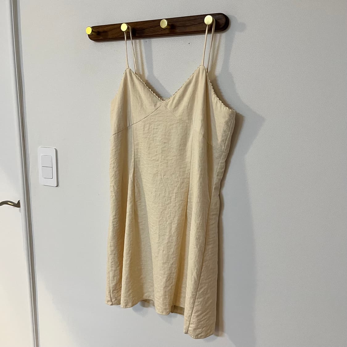 빈티지 네이비 바선생 퍼프 소매 우드 단추 튜닉 원피스