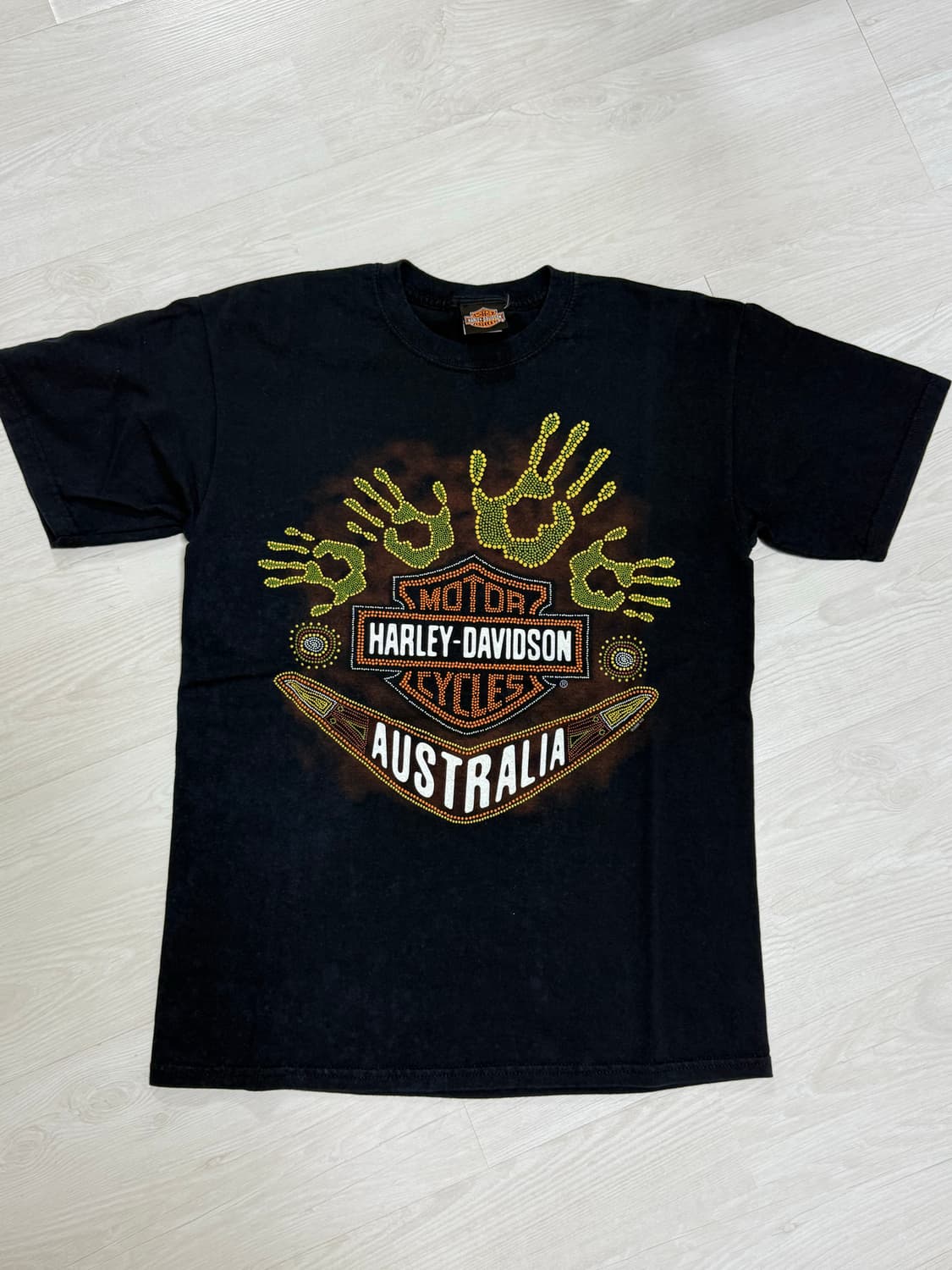 할리데이비슨에서 출시한 오스트레일리아 테마의 빈티지 반팔 티셔츠입니다. 기장:70 품:50