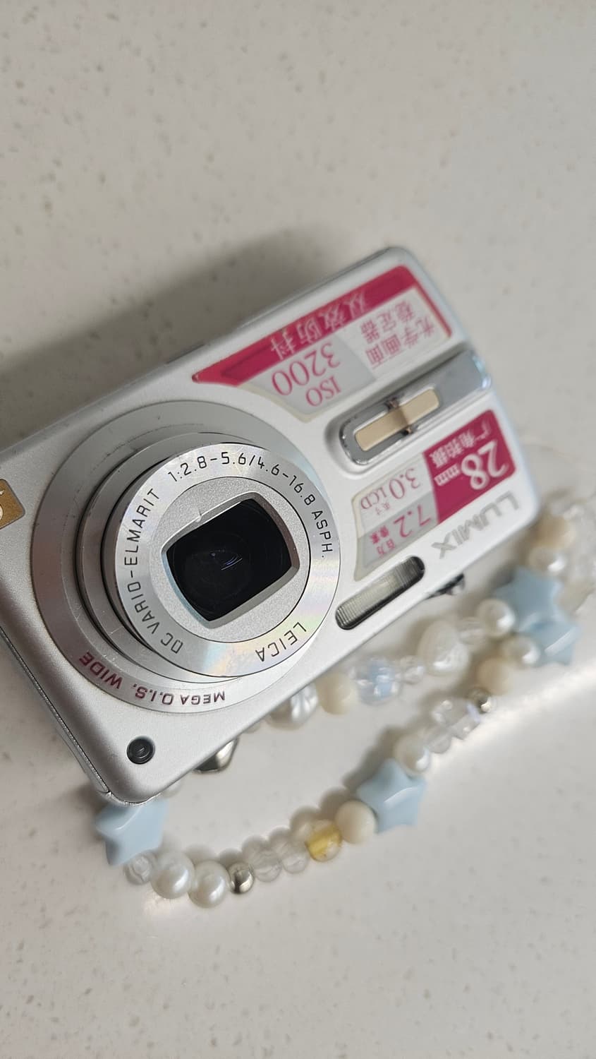 화소수 약 720만 화소 (CCD 센서) 렌즈 라이카(LEICA) DC VARIO-ELMARIT 화각 28mm ~ 102mm (광학 3.6배 줌) 조리개 F2.8 (광각) ~ F5.6 (망원) 감도(ISO) ISO 100 ~ 1250 (고감도 모드 시 3200) 화면(LCD) 3.0인치 (23만 화소) 저장매체 SD / SDHC 카드 무게 약 151g (본체 기준) / 190g (배터리 포함) 크기 98 x 57 x 25 mm​ 라이카 렌즈 ​CCD 센서 ​3인치 대화면 ​광각 28mm ​손떨림 방지(O.I.S) 오래된 모델이라 배터리 효율이 낮을 수 있으며 기스가 많습니다. 예민하신 분들은 피해주세요. 해외에서 구매해서 충전 시 변환기 필요합니다. 케이스와 이동장치까지 다 드려요
