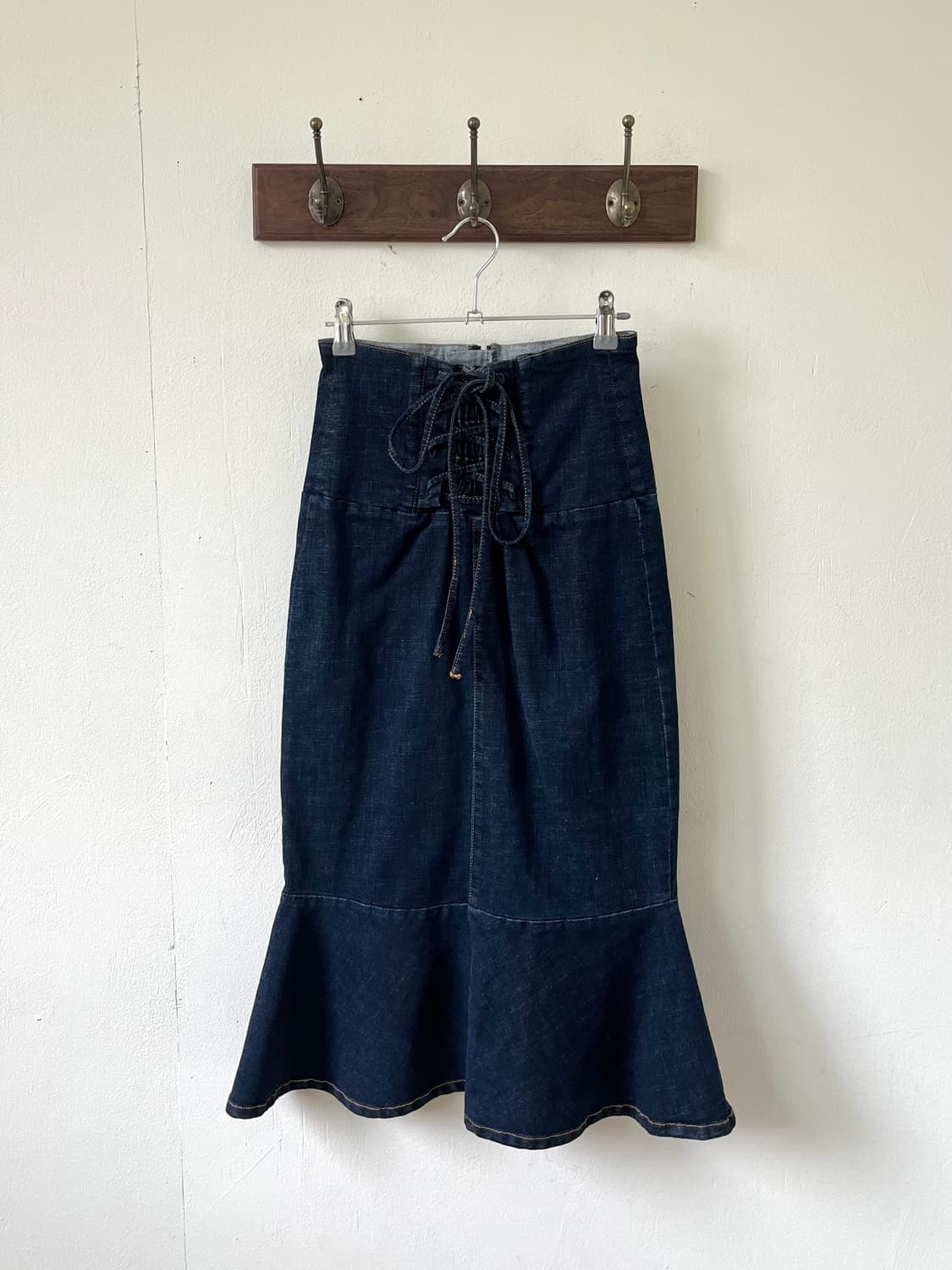 MIIA 데님 코르셋 스커트 FABRIC cotton 89% polyester 8% polyurethane 3% 전체적으로 양호한 컨디션 SIZE 허리 32 총장 78 사이즈 F MODEL SIZE 172 / 55