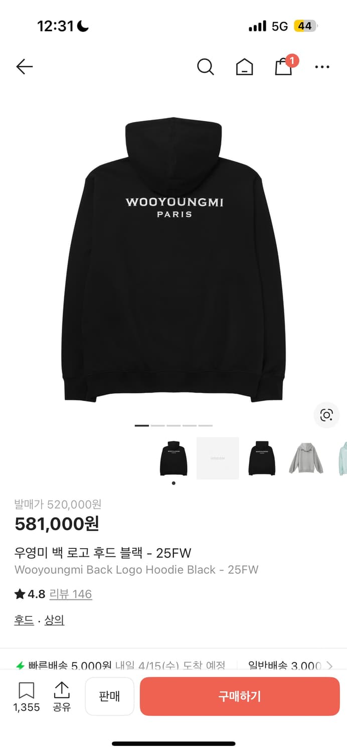 제일 인기 많은 46사이즈입니다 현재 크림으로 46사이즈 80만원이네요 하자 없고 상태 좋습니다 25년꺼는 다른 시즌과 다르게 후드 끈에 우영미 와펜 박아져 있습니다 별로 안 입어서 상태 좋아요