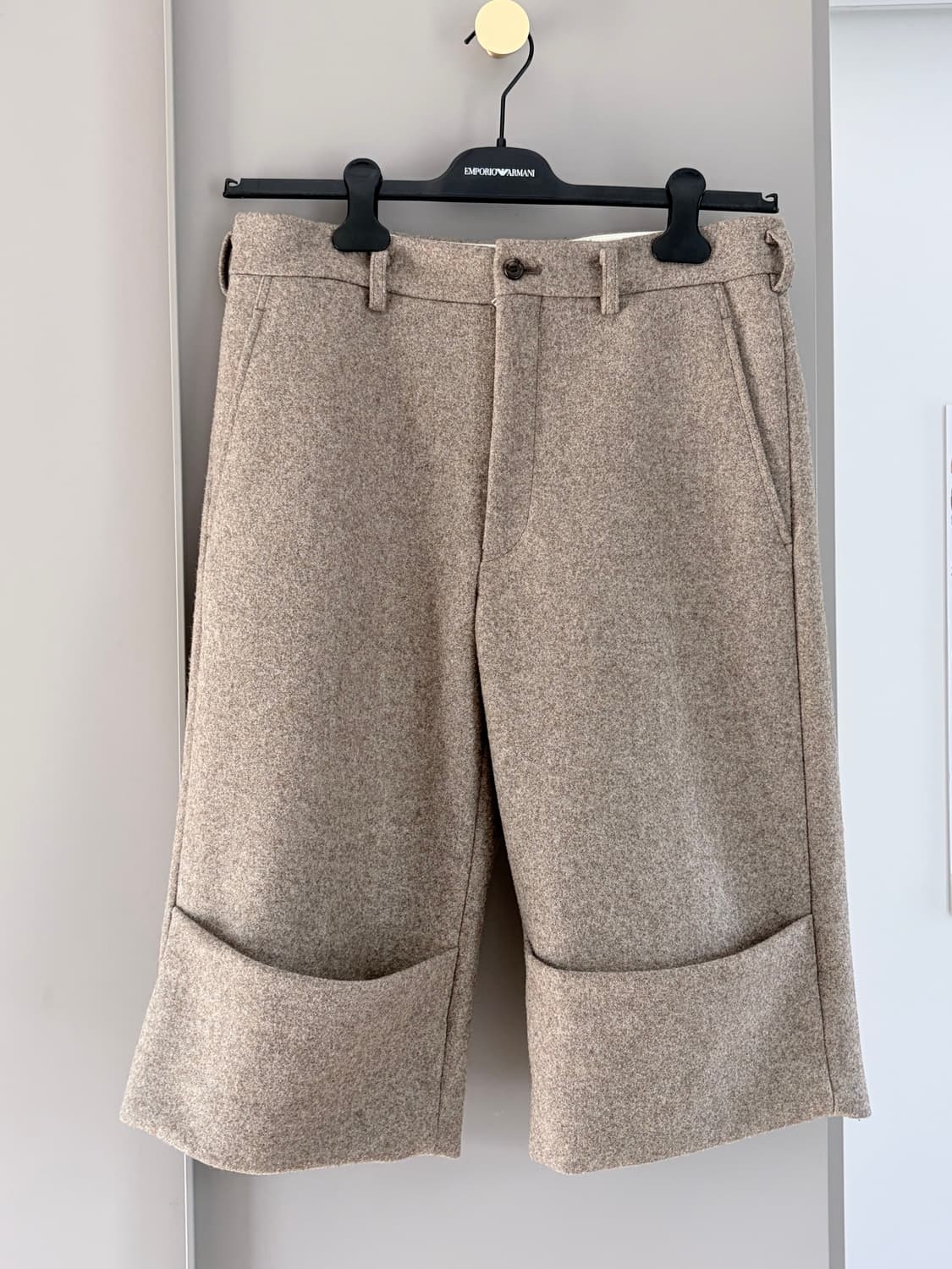 런던 dsm 1층에서 구입한 캐쥬얼 반바지 입니다. 가을 겨울에 니삭스에 신으면 예쁩니다. 4회 착용후 습도조절 드레스룸에서 보관했습니다. 제가 알기론 2024년 fw 런웨이 컬렉션 제품으로 몇피스 세상에 없는걸로 압니다.