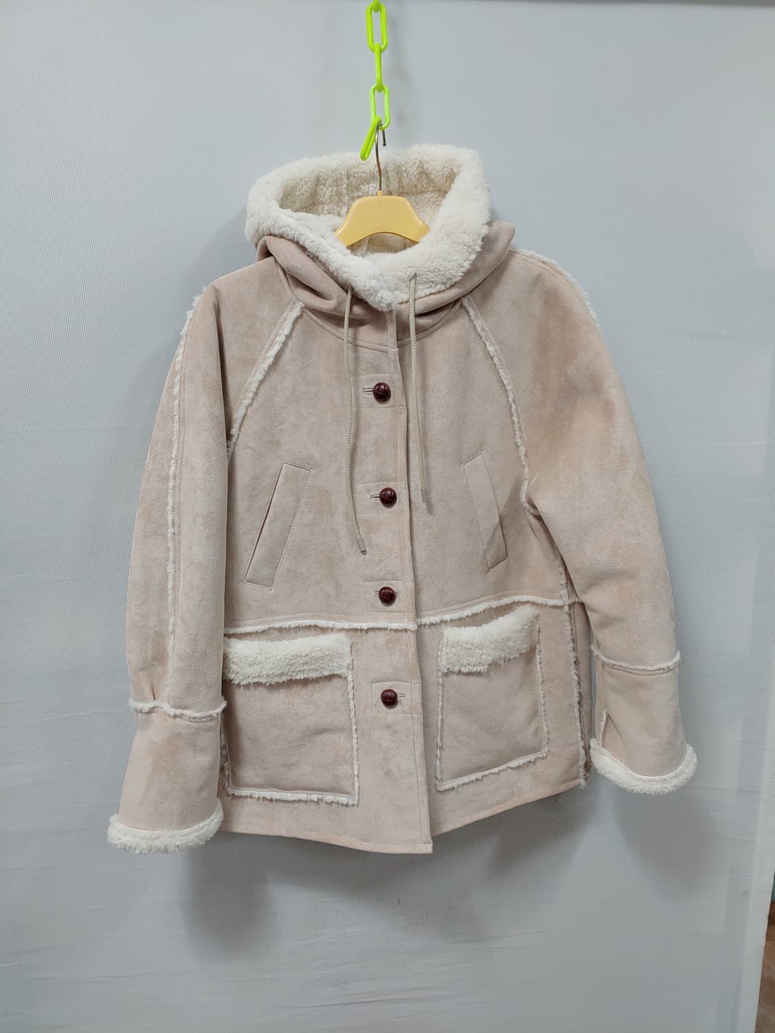 어몽 여성 후드 무스탕 코트입니다. 인조 무스탕 소재로, 부드러운 터치감을 자랑합니다. 후드에 털이 달려있어 더욱 따뜻하게 입으실 수 있습니다. 택 사이즈 S 이고, 오버사이즈 입니다. 실측 가슴반품 60, 총장 어깨 높은곳부터 74cm 입니다. 25년도 옷이고, 거의 새옷 입니다. 우체국택배 무료배송 입니다.