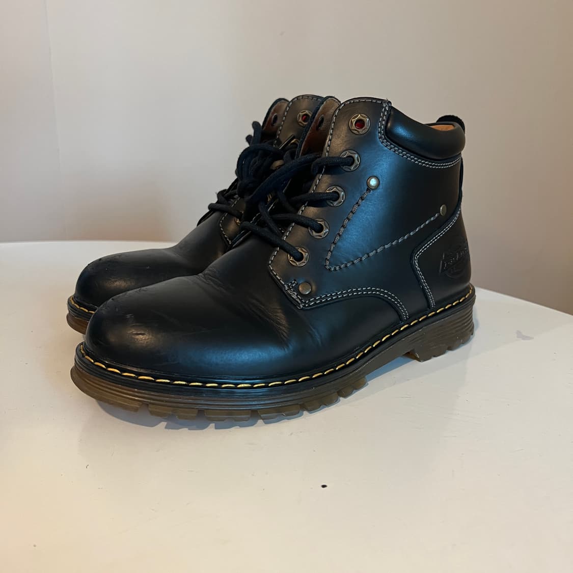 디키즈 마틴 블랙 부츠 입니다 사이즈 : 250 견고한 느낌의 블랙 가죽 소재로 제작되었으며, 대조되는 색상의 스티치가 특징입니다. 발목까지 오는 하이탑 디자인에 5개의 아일렛(신발끈 구멍)이 있는 5홀 구성입니다. 일부 모델은 착용의 편의를 위해 측면에 지퍼 디테일이 포함되어 있습니다. 미끄럼 방지 처리가 된 두툼한 고무 밑창을 사용하여 캐주얼한 코디는 물론 작업용으로도 활용 가능합니다. 제품 상태 사진 확인 해주세요! 박스x • 판매중인 모든 제품은 빈티지 제품입니다. 빈티지 제품 특성상 사진 외의 오염이나 데미지가 존재 할 수도 있으니 , 신중히 구매 해주세요! • 빈티지 특성상 교환 환불 및 반품은 불가능합니다, 고민후 구매 부탁 드릴게요! 250-00631