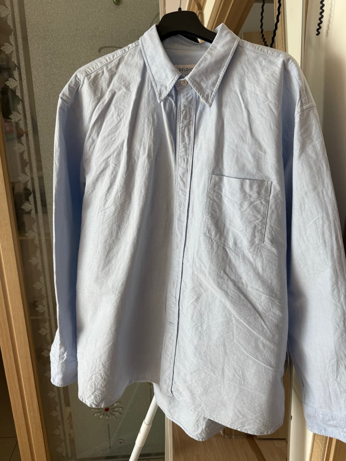 델디오 옥스퍼드 셔츠 블루 XL 입니다. 2회 입고 집에 보관해두다가 손세탁해놨습니다! 가격문의도 받습니다 :)
