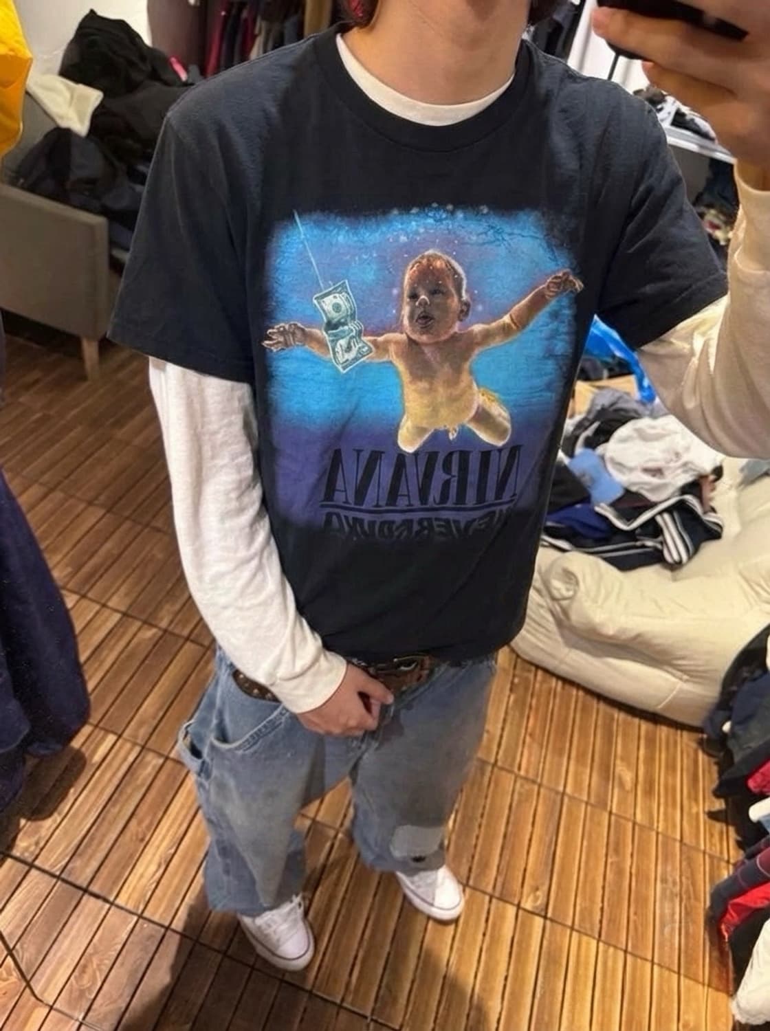 너바나 네버마인드 빈티지무드 링거반팔티