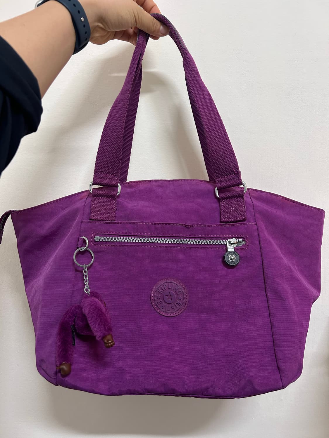 키플링 보라색 토트백입니다. 가볍고 수납 공간이 넉넉해 데일리로 사용하기 좋은 아이템입니다. 고릴라 키링이 포인트로 귀여운 매력을 더해줍니다. 사진처럼 내부 오염이 있으며, 겉부분 가방 입구 쪽에도 약간의 오염이 있습니다. 사용 시 크게 눈에 띄지는 않으나 예민하신 분들은 참고 부탁드립니다. 바닥면 기준 가로 25 세로 17 높이 27 손잡이 길이 19 ※ 제품 특성상 교환 및 환불은 불가하오니 구매 전 충분한 확인 부탁드립니다. 배송비 안내 반값택배 2,000원 일반택배 4,000원