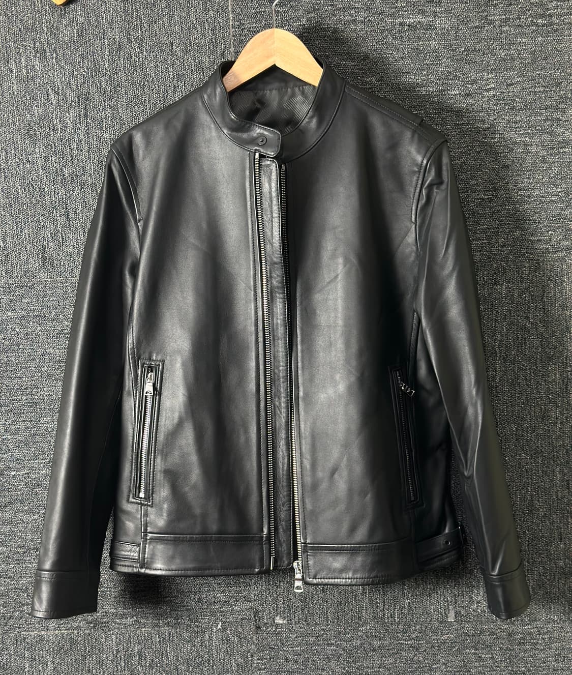 BASSO HOMME 브랜드의 멋스러운 블랙 가죽 자켓이에요 사진에서 보이는 것처럼 깔끔한 디자인과 고급스러운 소재가 돋보여요 내부에는 실용적인 포켓이 있어 소지품 보관이 용이해요 어떤 코디에도 잘 어울려 데일리로 입기 좋은 자켓이랍니다 길이 65cm 어깨 44cm 가슴 50cm 소매 61cm