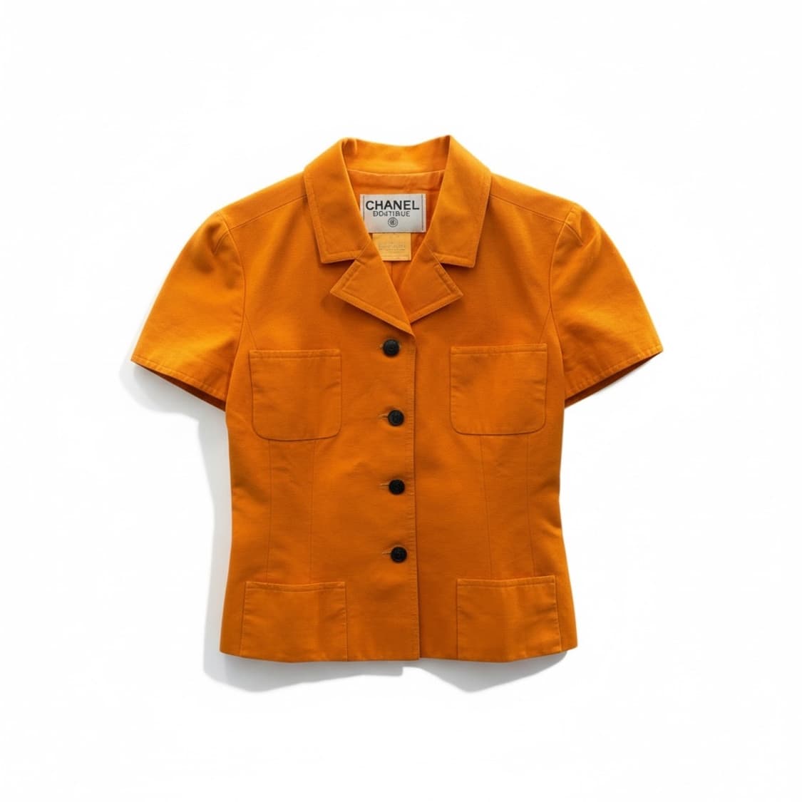 샤넬 부티크의 매력적인 오렌지 컬러 반팔 자켓이에요 사진에서 보이는 것처럼 깔끔한 디자인과 고급스러운 소재가 돋보여요 사이즈는 38이며, 다양한 하의와 매치하기 좋아요 데일리룩이나 특별한 날에도 멋스럽게 연출할 수 있는 아이템이에요. 빈티지 제품으로 국내에서 구하기 힘든 제품입니다. 해외 빈티지 시장에서도 200정도로 거래되는 제품이에요.
