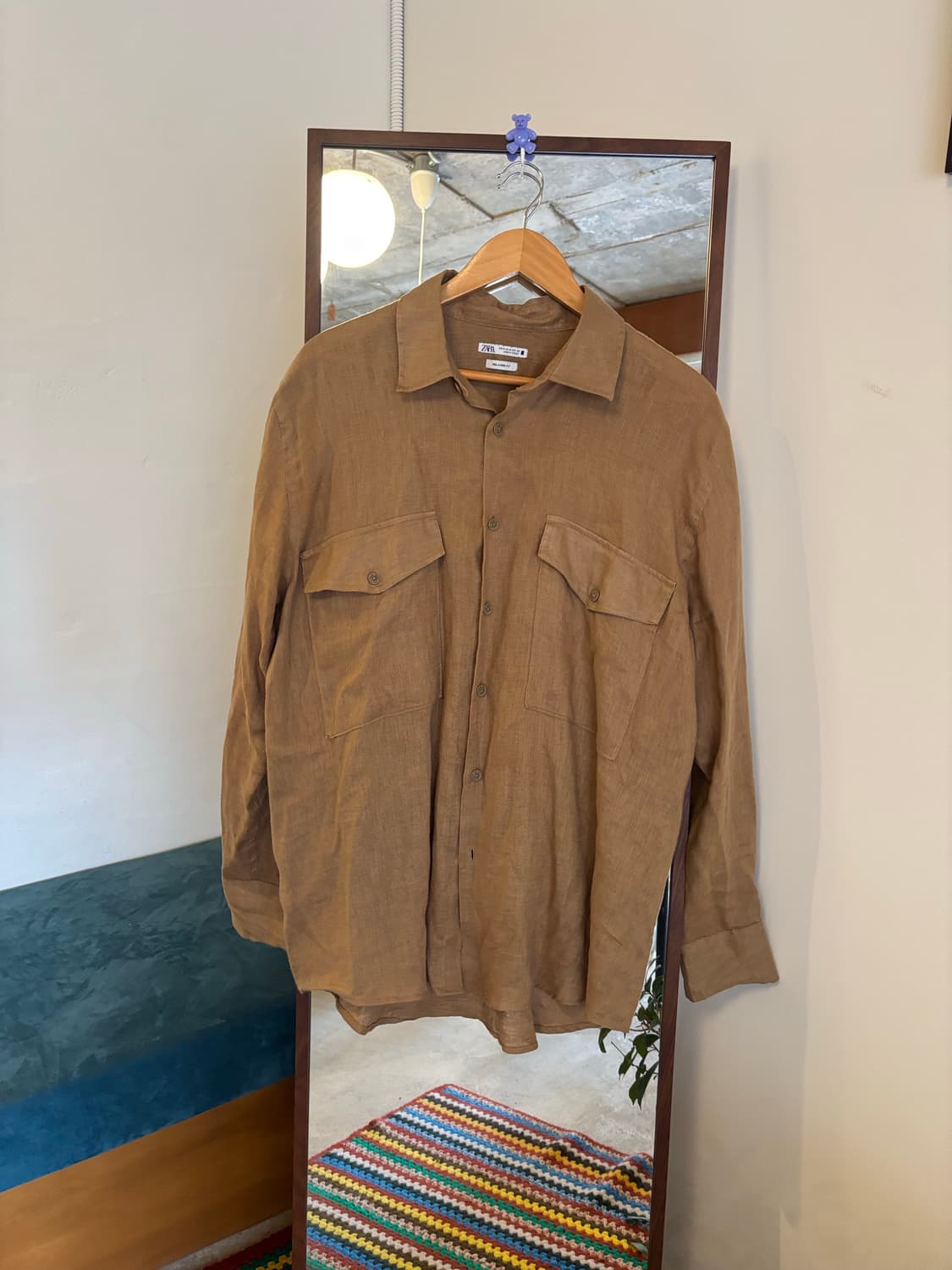 자라 린넨 긴팔 셔츠 브라운 색상입니다. 포켓 디테일이 있어서 수납이 용이하고, 편하게 입기 좋습니다. 린넨 소재라 통기성이 좋아서 여름에도 시원하게 입을 수 있습니다. 어깨 52 팔 66 가슴 61 기장 앞74 뒤80