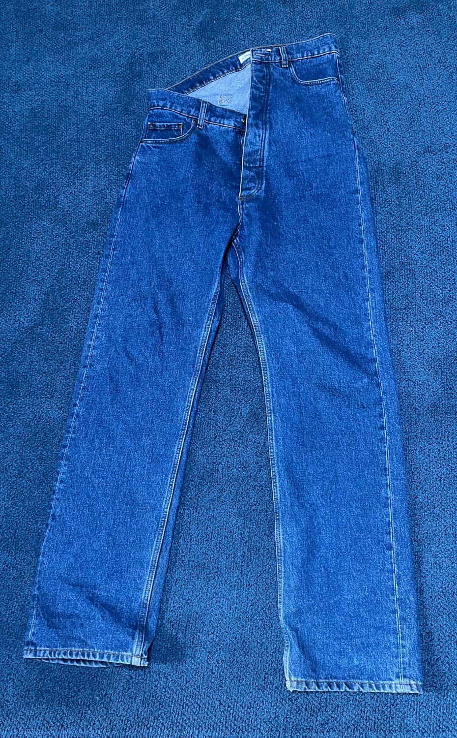 Y/Project 비대칭 데님 30사이즈 제품 컨디션: 10/8 전체적인 컨디션은 양호하나 밑단쪽 구멍으로 인해 감점 요인 발생, 이외에 밑단 자연스러운 해짐 30 사이즈임에도 32사이즈에 가까운 제품(오버사이즈 제품) 유니크함과 청 특유의 색상이 잘 표현된 제품 깔끔하게 거래하시면 네고 가능합니다.
