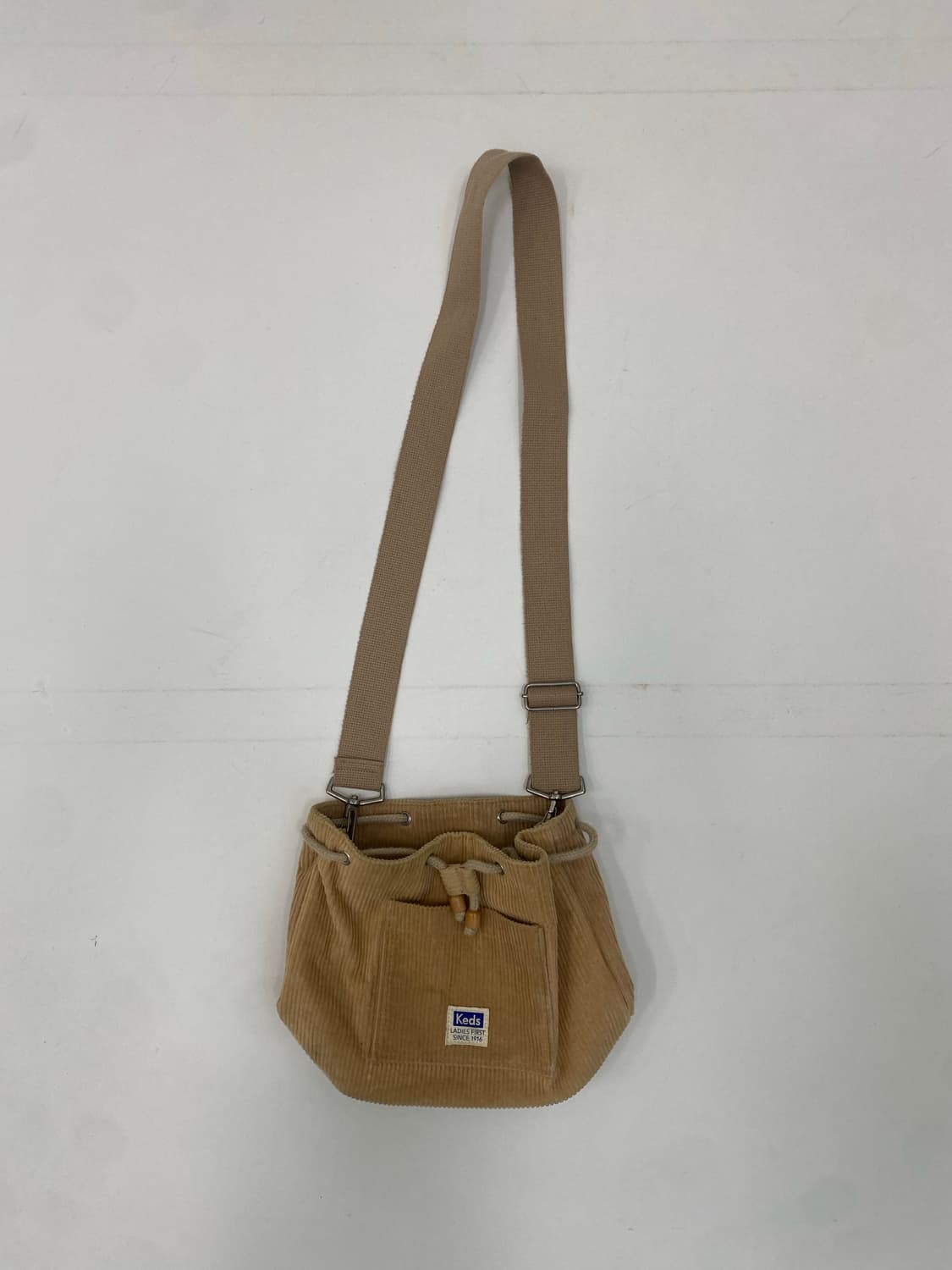 케즈 코듀로이 크로스백 베이지 색상입니다. 겉면에 케즈 로고가 부착되어 있습니다. 끈 조절해서 크로스백, 숄더백 둘 다 연출 가능합니다. 문의 없으시면 바로 안전결제해주시면 됩니다! 사용감 존재합니다 실측 cm 세로 21 가로 19 두께 12