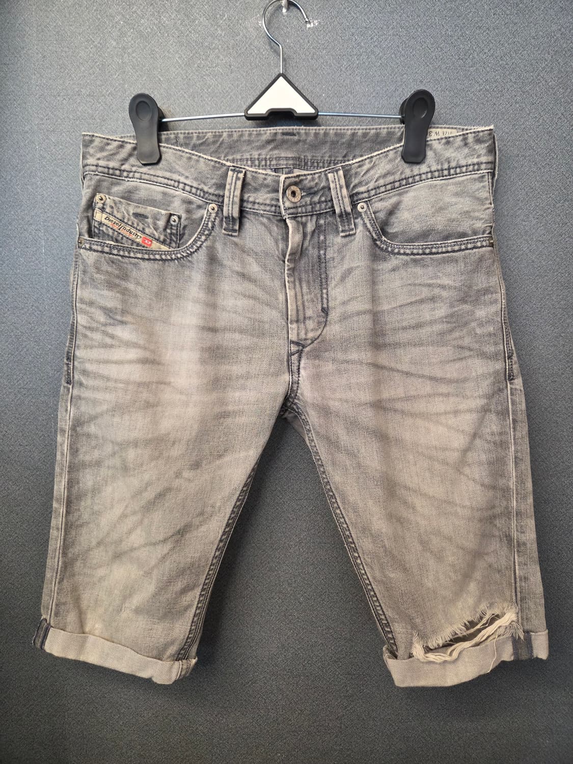 디젤 청반바지에요. 사이즈 30, 허리단면 42, 허벅지 27, 총장 55, 허리 실측은 커요. 30-31까지 맞으실것같아요. 색상 그레이구요. 반골반바지에 허벅지까지 핏되게 입는 옷이에요. 다리 날씬하신분한테 추천드려요. 신축성 없어요.
