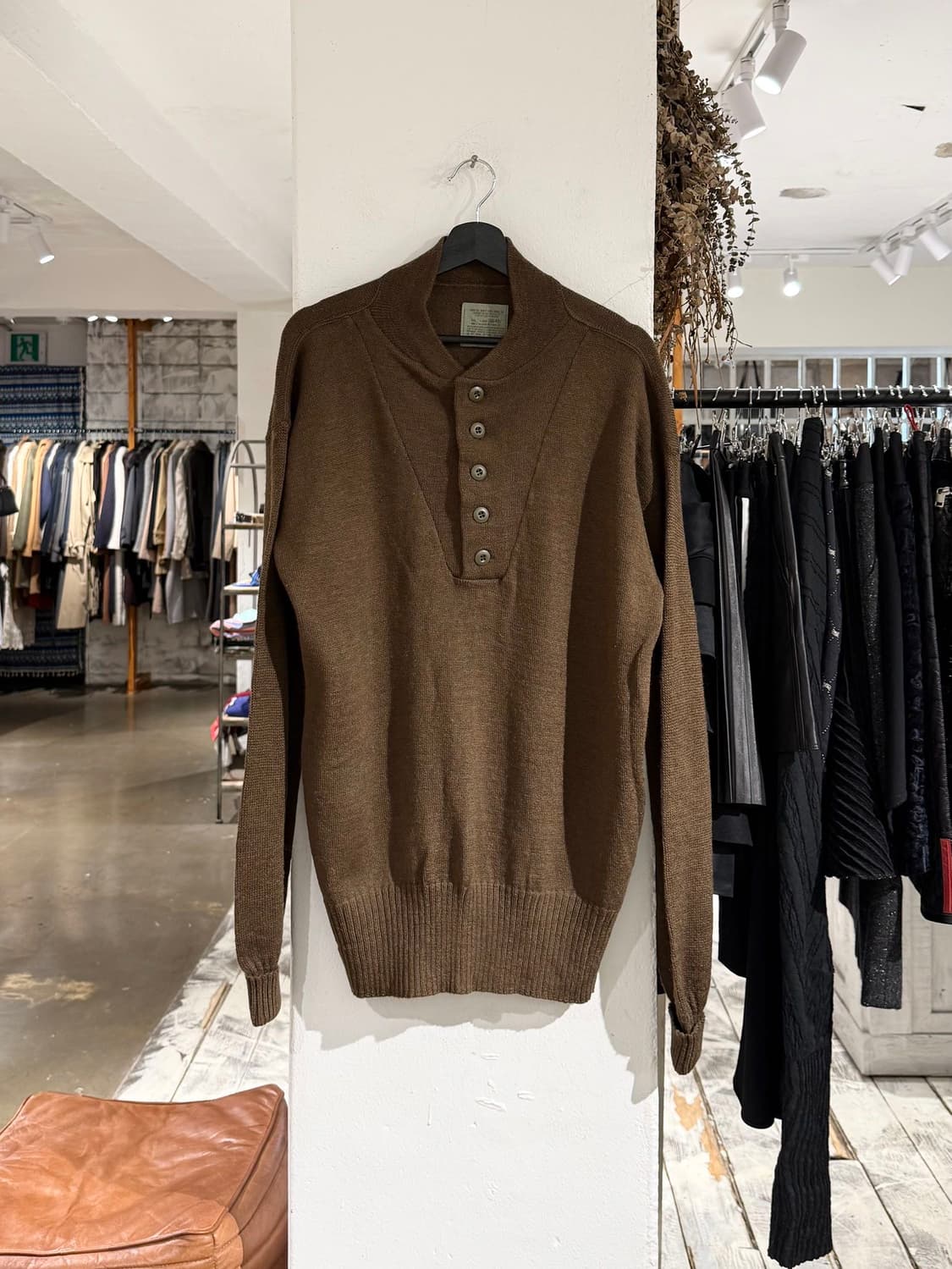 u.s.army 카키브라운 5버튼 울 스웨터