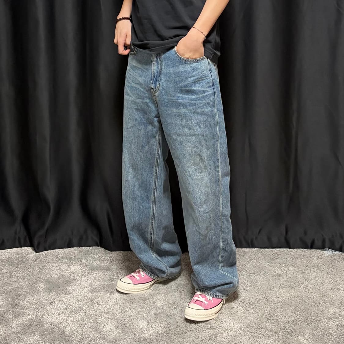 • 유니온블루 아콘 와이드 데님팬츠 워시드블랙 30사이즈