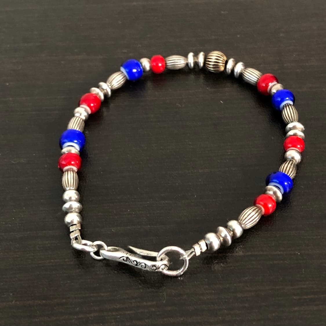 Saad beads braclet 925 silver(색깔 비즈 제외) 기존 사드의 실버 비즈 팔찌 베이스에 레드,블루 비즈를 더해 커스텀한 제품입니다. 단품으로도, 레이어드로도 활용도 높은 제품 후크 포함 총 길이 약 19cm