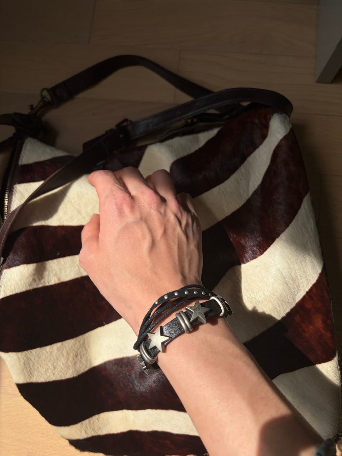블랙 색상의 펑크한 무드 팔찌 두개 세트입니다. 얇고 무채색이어서 어느 스타일에도 매칭하기 편합니다.