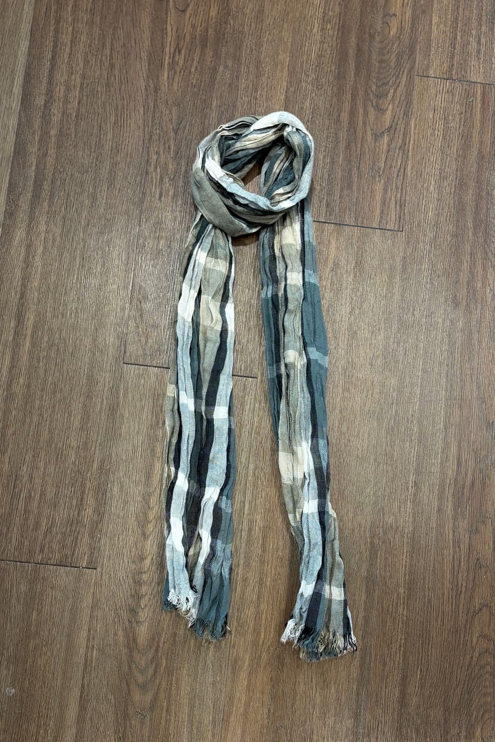 TAKEO KIKUCHI Crinkled Plaid Scarf