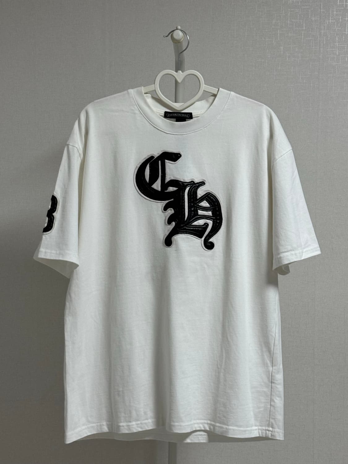 • [L] 크롬하츠 넥로고 반팔 티셔츠 블랙 아미그린