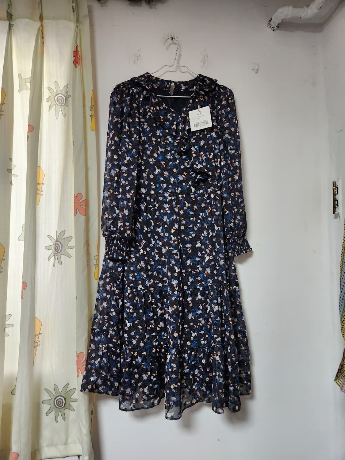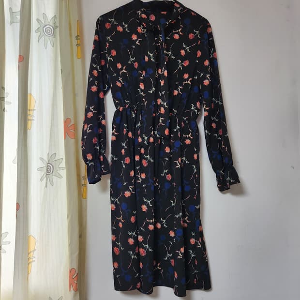 블랙 바탕에 플라워 패턴이 있는 OZOC 롱 원피스입니다. 사이즈는 55이고, 택도 달려있는 새 상품이지만 밑단 조금 수선했고 봉제부분이 깔끔하지 않은거같아서 저렴하게 올려요 소매빼고. 안감있어서 비침걱정 없고 스타일 이뻐요 쉬폰 소재라 지금 날씨에 딱 입기 좋아요. 뒷기장 104 문의 없으시면 바로 안전결제해주시면 됩니다!