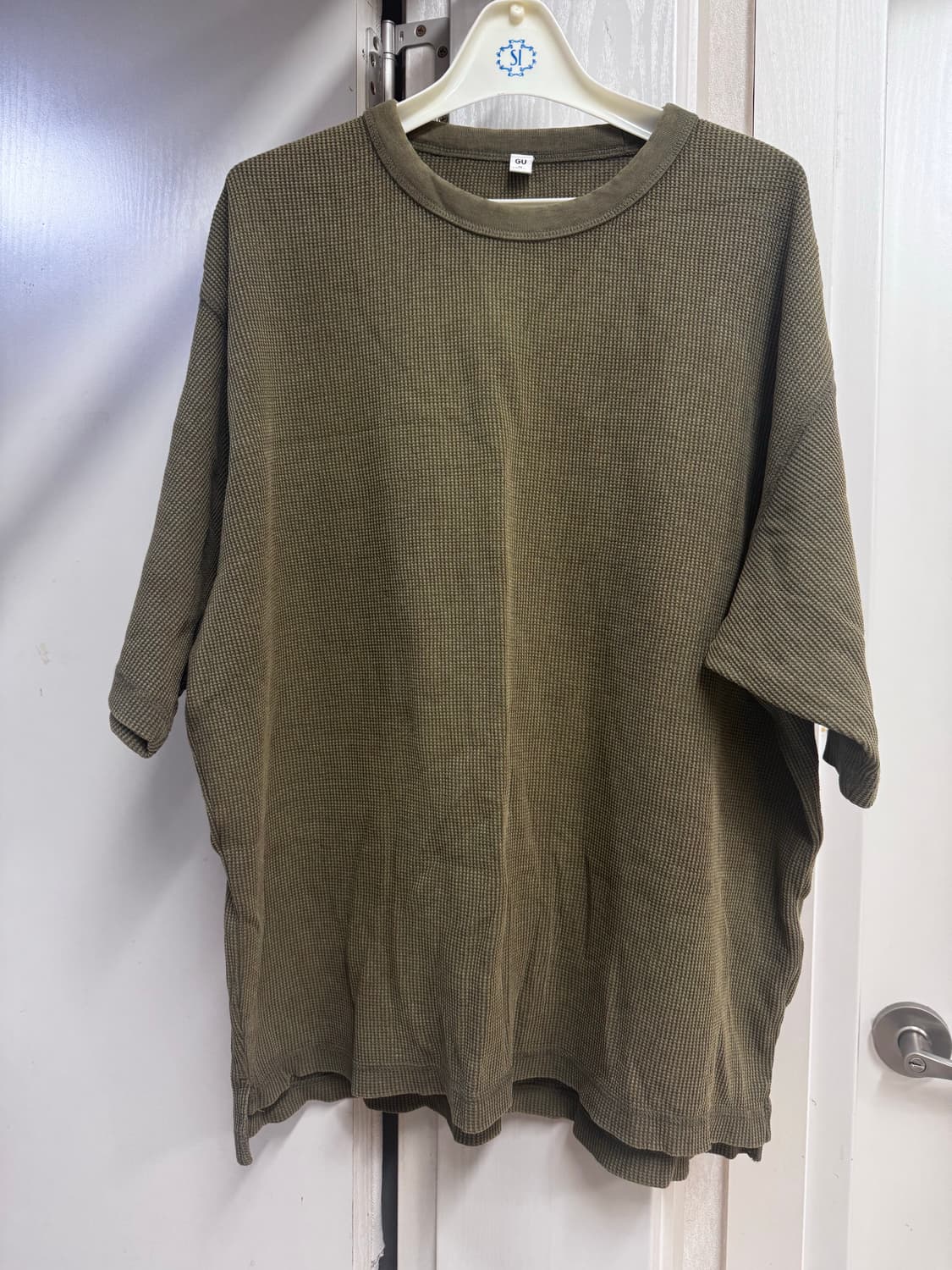 GU 와플 반팔 티셔츠 카키색
