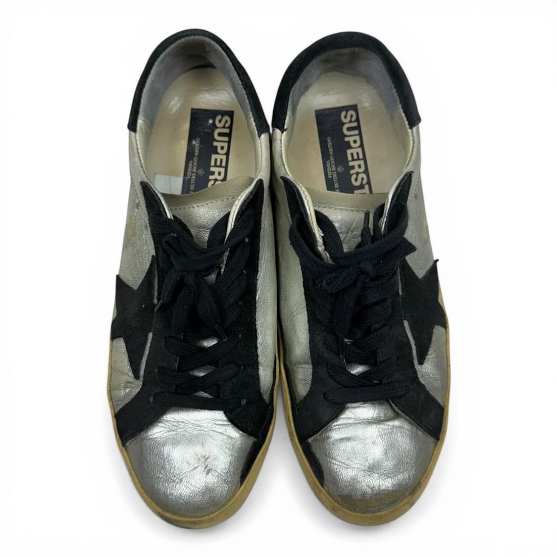 ☀제품명 : (40) 골든구스 슈퍼스타 실버블랙 ☀️가격 : 79,000원 ☀️표기 사이즈 : 40 ☀️컨디션 : 10/7.5 ☀️하자나 이염 여부 : 사진참조