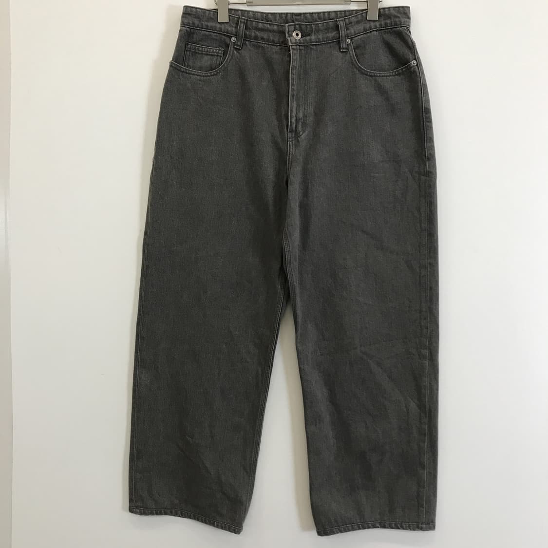 DETAIL - 브랜드 : 쿠어 - 소재 : 면 100% - 색상 : 그레이 - 상태 : 9/10 - 상세설명 : 쿠어 COOR 와이드레그 그레이진 입니다. SIZE - 택사이즈 : L 권장사이즈 : 34 실측사이즈 허리단면 : 44cm 밑위 : 31cm 총길이 : 104cm 허벅지단면 : 33cm 밑단단면: 25cm 입니다.
