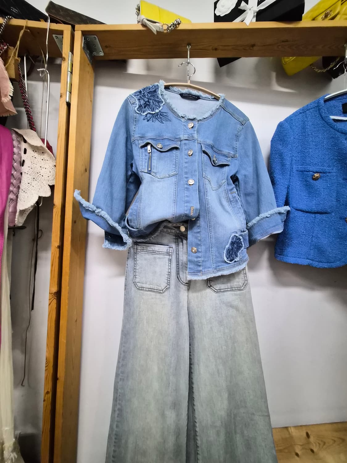 입금순 거래 . 구입예고사절 개별가격 상세설명 정독요망!!!! 챗팅은 구매결정 하신후에만 신중히!!! 감사합니다 ~^^♡ 샤트렌 스판데님 자켓95 안늘린반품45 데님 부드럽고 텐션아주좋아요 총장51 자수데님패치. 보석버튼 스판으로. 착용감도굿 상태좋아요 배송비4000