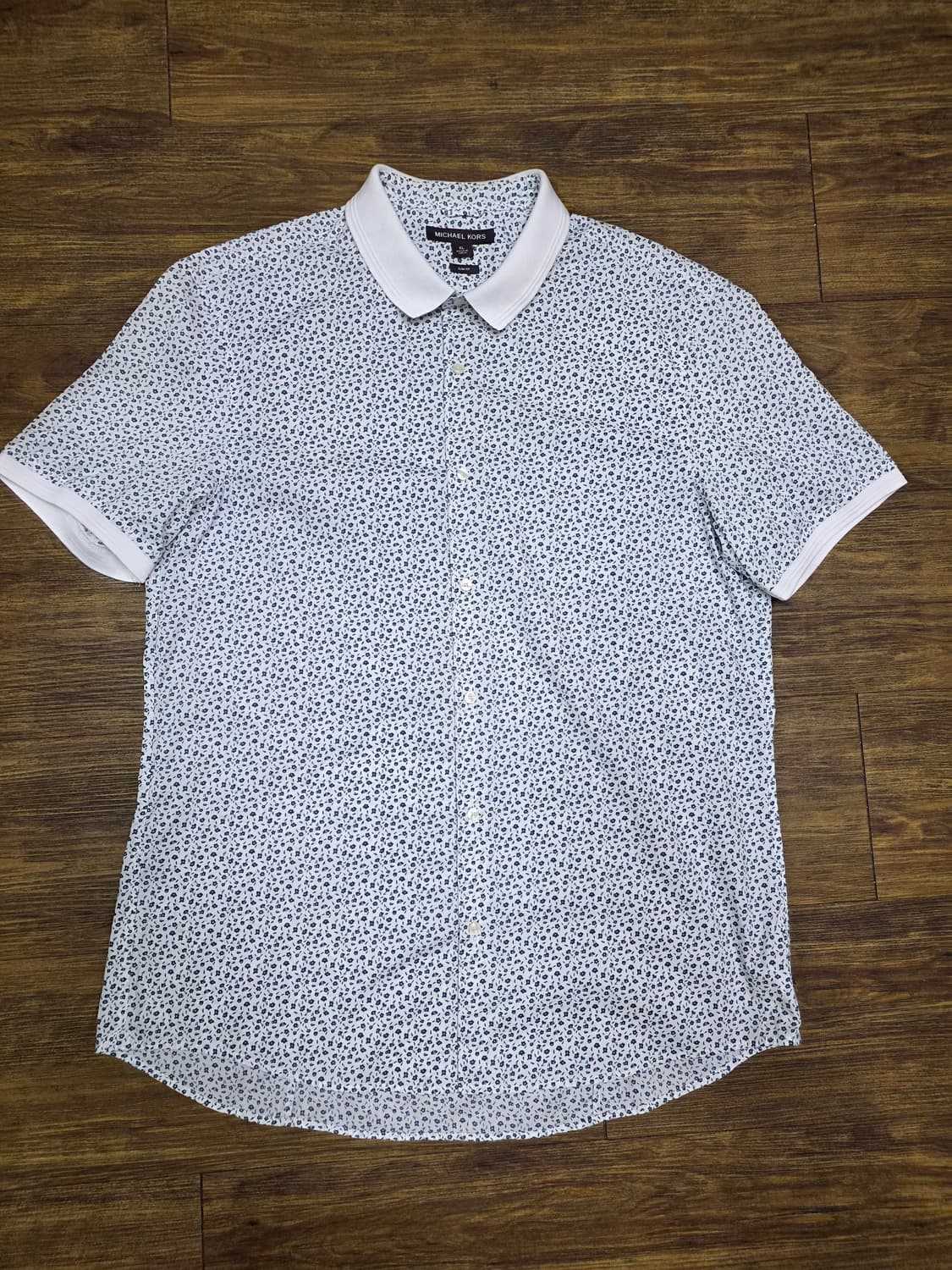 마이클코어스 플라워 반팔 셔츠입니다. 시원한 재질이라 여름에 입기 좋아요. 흰색 카라와 소매 디테일이 깔끔합니다. 문의 없으시면 바로 안전결제해주시면 됩니다! 상품명: 마이클코어스 반팔셔츠 색상: 꽃무늬 사이즈:xl 실측사이즈: 어깨 50가슴58 총장 78팔길이24
