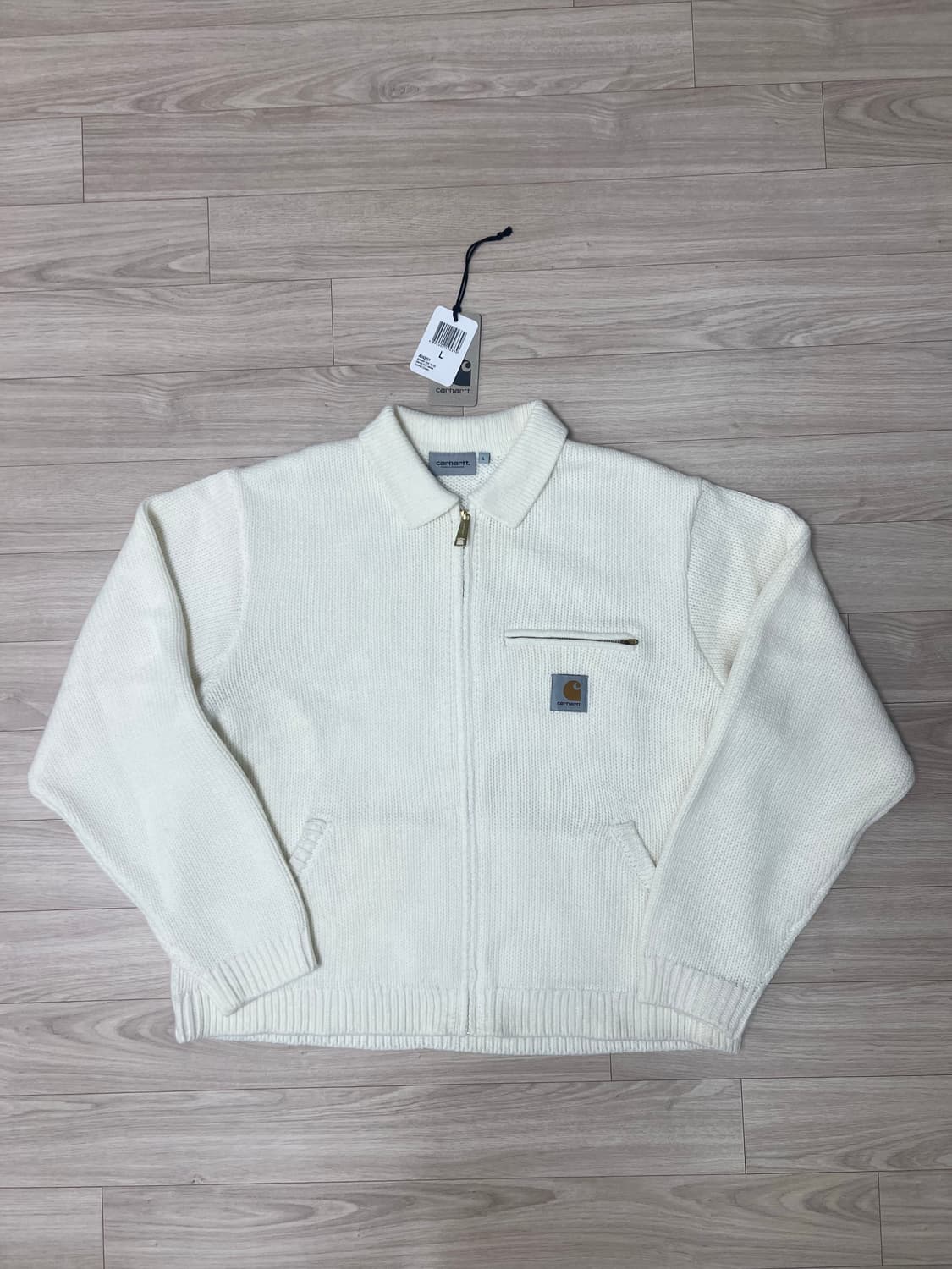 칼하트 디트로이트 니트 자켓 캐놀 크림 컬러 L 사이즈 입니다. 택 보관 중이고 3회 정도 잠깐씩 착용으로 상태 최상입니다. 실측: 기장62, 어깨49, 소매장63, 가슴둘레127 수수료/배송비 포함 입니다.