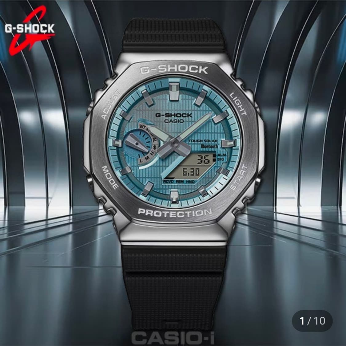 지샥 카시오의 매력적인 블루 메탈 시계예요 모델명은 GBM-2100A-1A2DR이며, 터프솔라 기능이 탑재되어 있어요 사진에서 보시는 것처럼 구성품 모두 갖춰져 있고 새제품입니다 깔끔하고 세련된 디자인으로 어떤 스타일에나 잘 어울려요