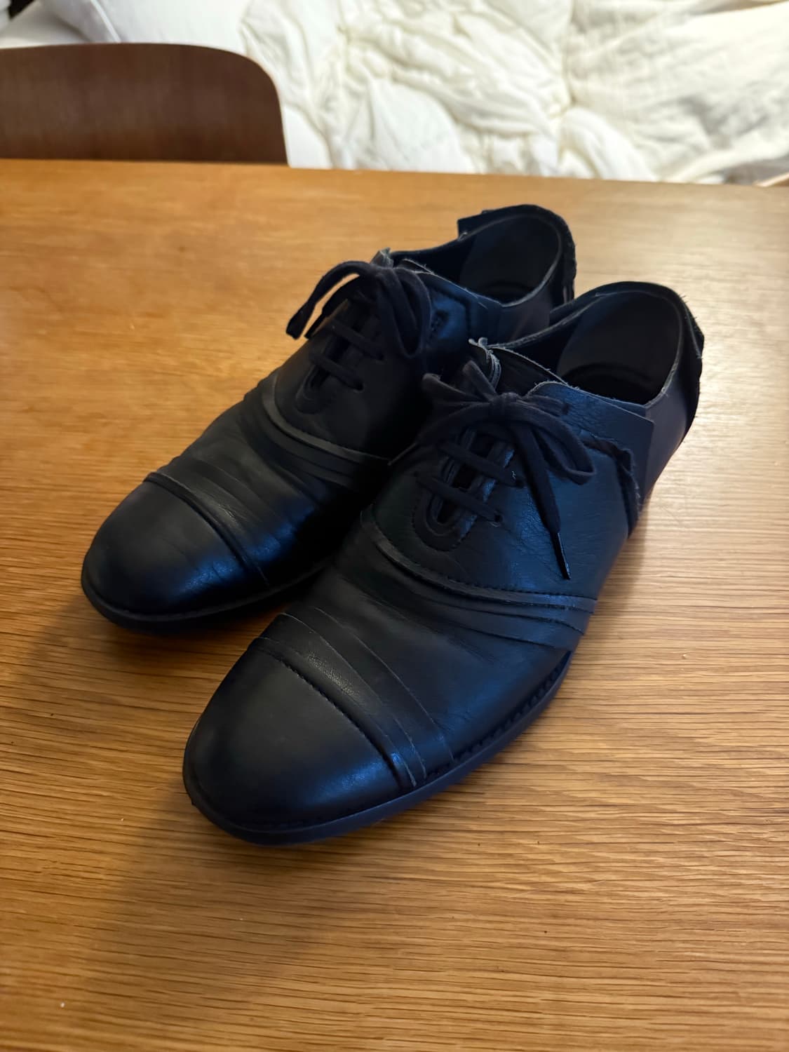 꼼데가르송 로퍼 240사이즈입니다. 실착 5회쯤 신었고, 깨끗하게 신었습니다. 약간 칼발에 발에 살이 없는 235인데, 좀 커서 손이 잘 안가네요ㅠ 240 정사이즈 이신분이 잘 맞을것 같습니다!ㅣ