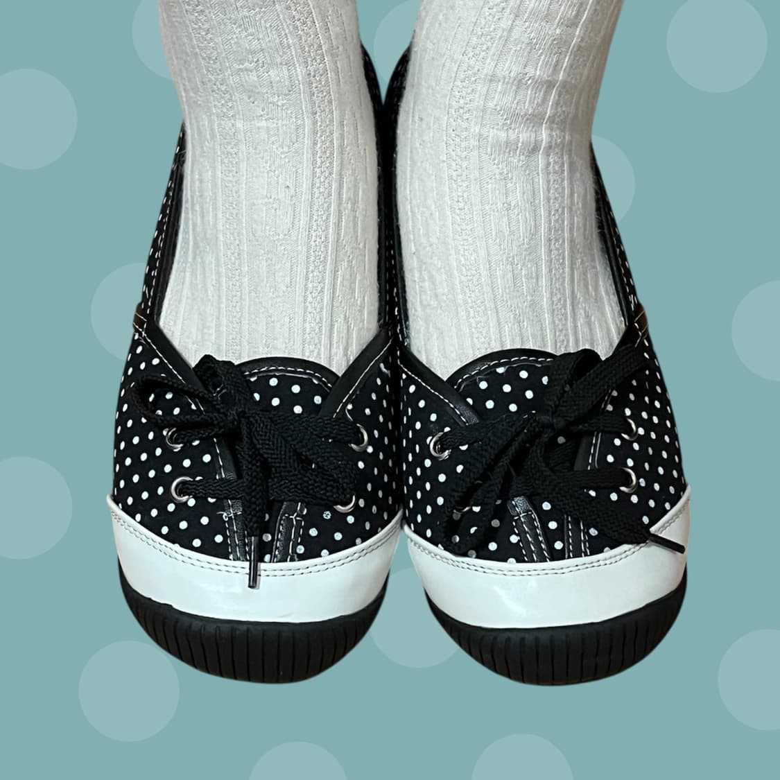 제가 한창 빠져있는 신발 디자인이에요 스니커즈인데 플랫슈즈같은 쉐입에 신발끈이 2~3홀만 들어가 있는 그런 디자인! 봄여름철에 활용하기 너무 좋은 디자인이고 특히나 요즘 유행하는 7부 카프리 레깅스와도 궁합이 좋습니다. 니삭스랑 러블리하게 코디해도 너무 귀엽구요ㅎㅎ 빈티지 제품이지만 데드스탁이고 풀박스 구성입니다! 평소 240 신는 저한테는 양말을 꼭 신어줘야 하는 정도고, 245~250 신는 분들이 딱 알맞게 신으실 수 있을 만한 사이즈감입니다. 문의사항은 언제든 챗 주세요!