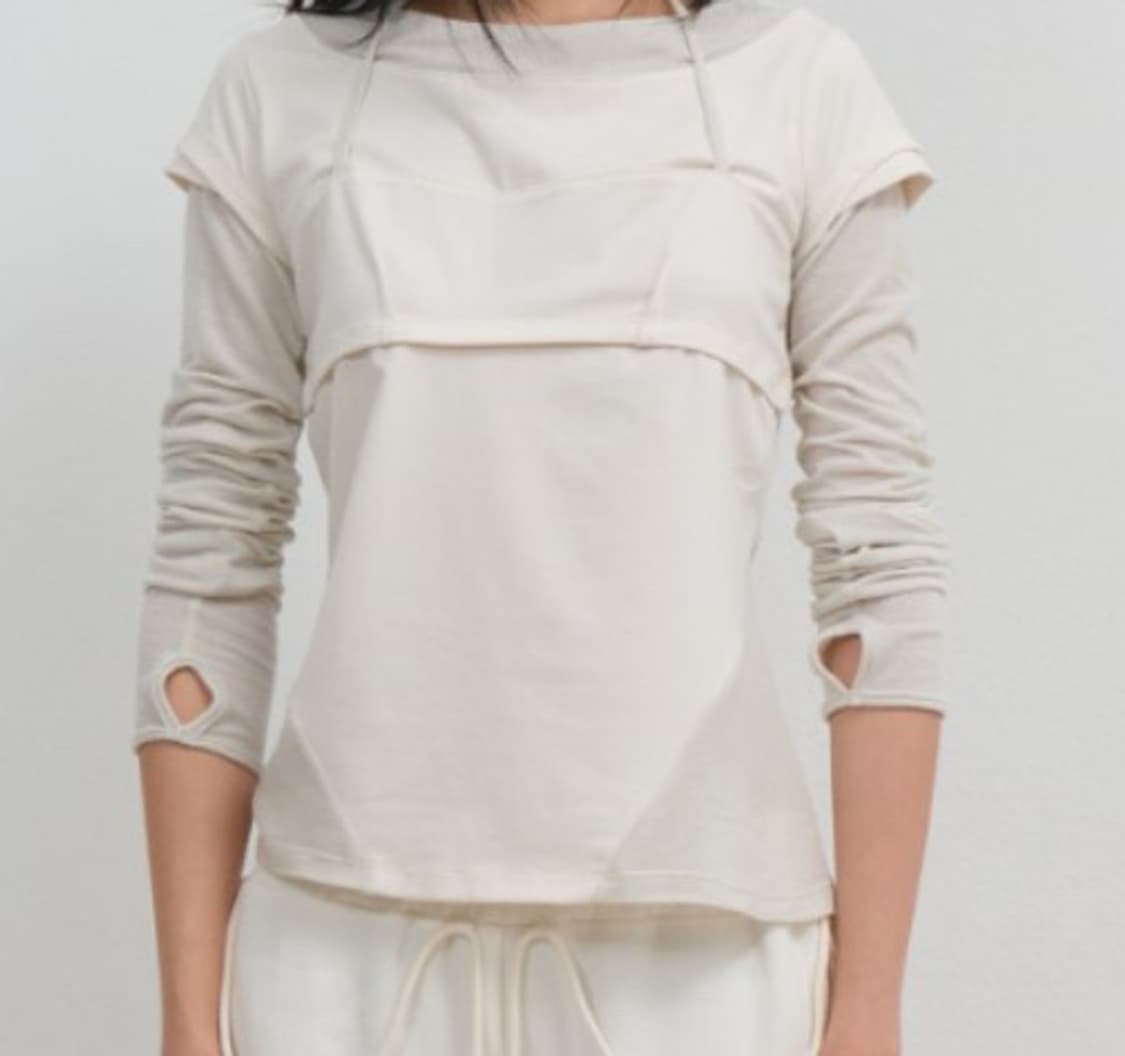 nache 나체 믹스드 레이어드 롱 슬리브 차콜