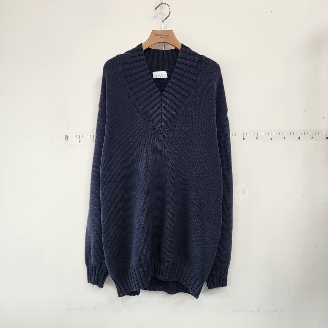 RAEY 네이비 V넥 니트 스웨터입니다. 넥 라인 디테일이 돋보이는 제품입니다. 캐주얼하면서도 세련된 스타일을 연출할 수 있습니다. 별도 문의 없으시면 바로 안전결제 부탁드려요! 반품/교환/환불❌️