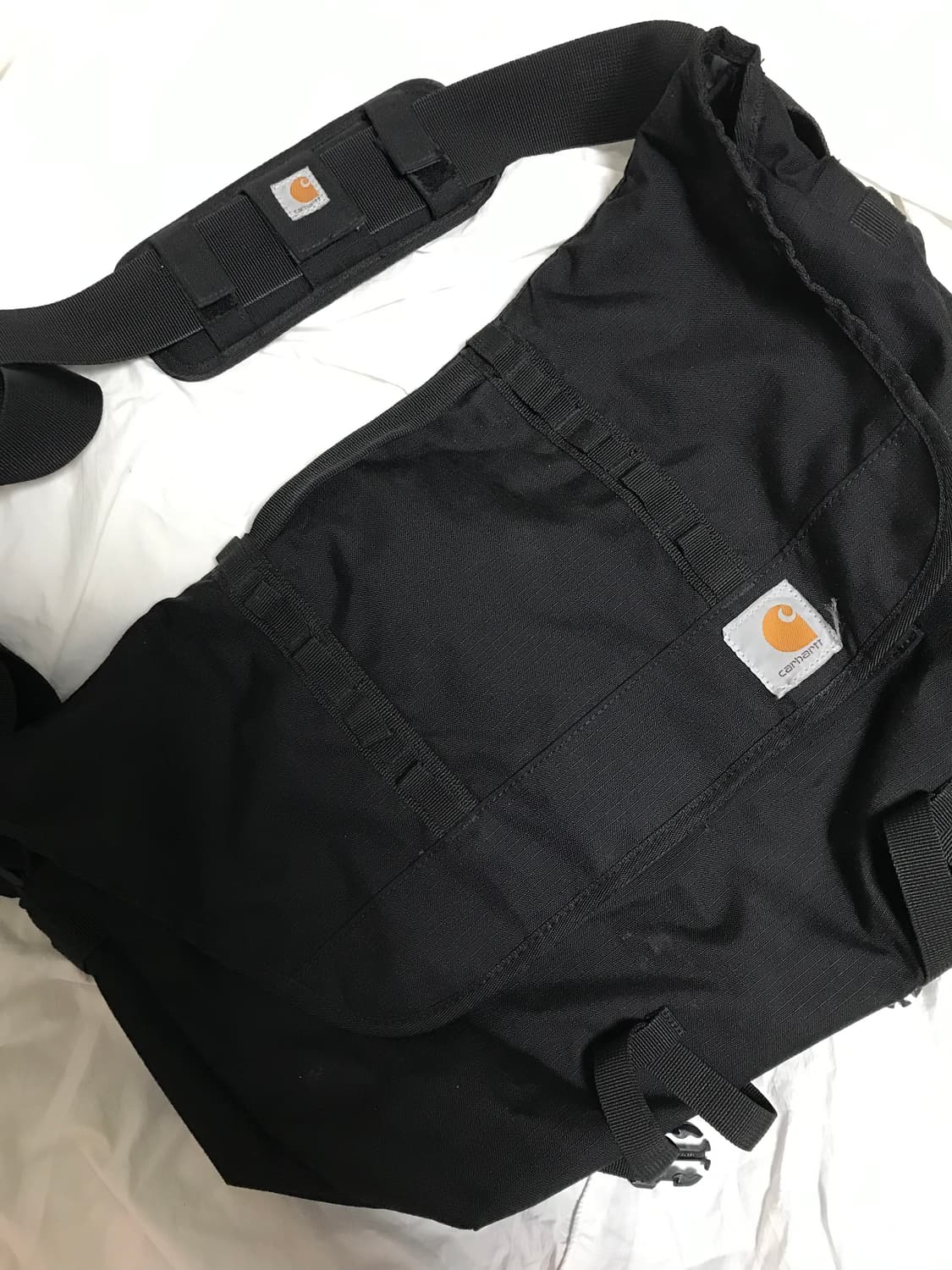 편하게 들고다니기도 좋고 코디하기도 편한 칼하트 메신저백이에요! 수납 매우 굳🥹👍 사용감 조금 있어용 *빈티지 특성상 환불 불가능*