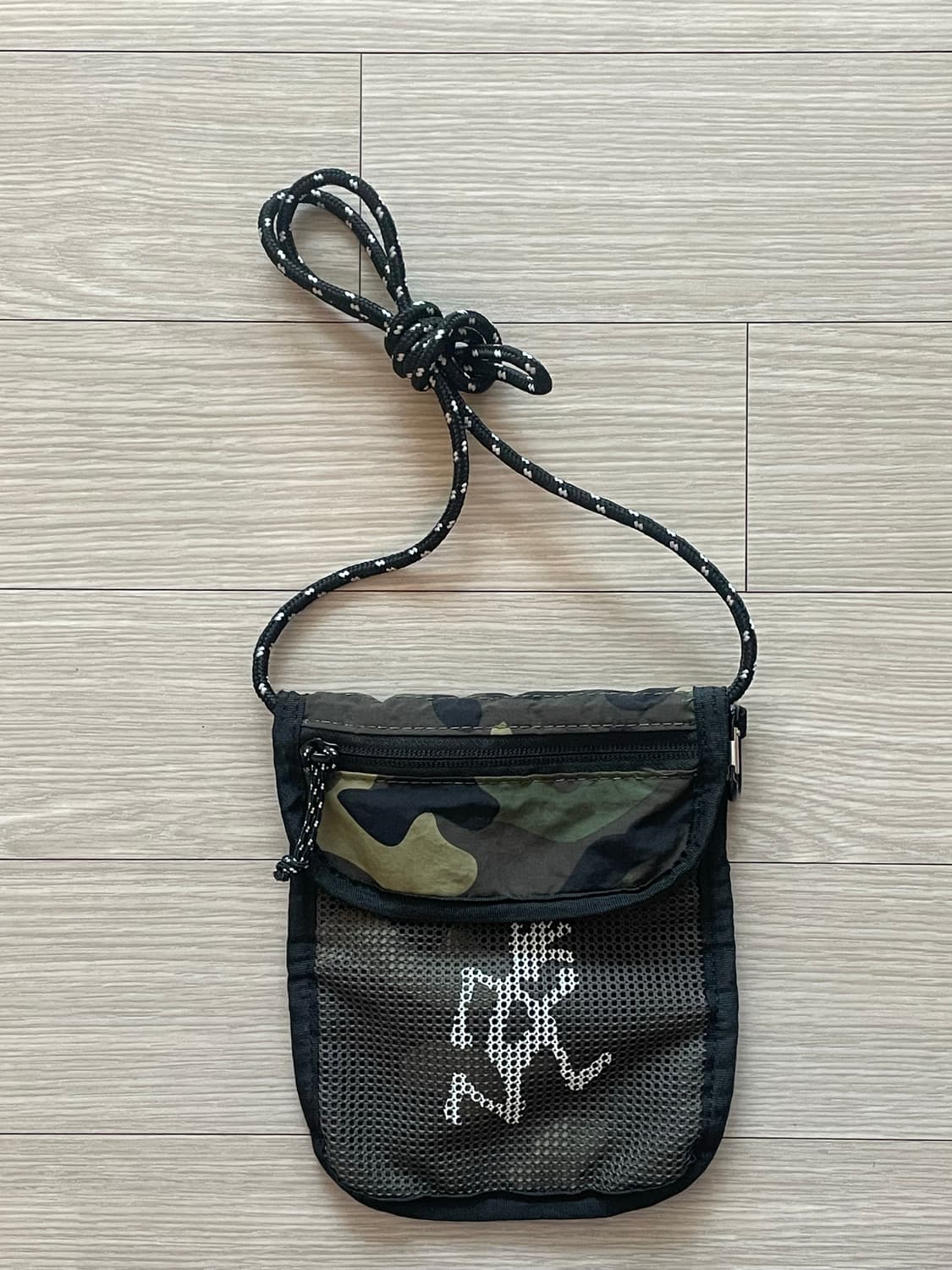 그라미치의 카모 패턴 멀티케이스 사코슈 파우치입니다. 앞면 메쉬 포켓과 내부 3단 수납공간이 있어 실용적이에요. 가벼운 외출이나 여행 시 소지품을 보관하기 좋아요. 몇번 사용하지 않았는데 옷입는 스타일이 달라져서 판매합니다.