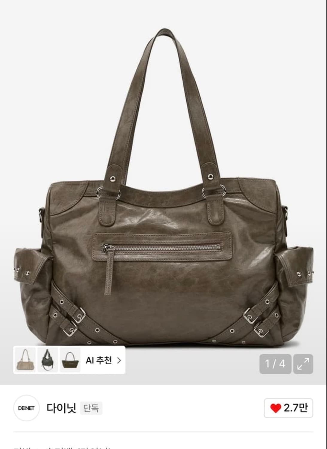 5회 착용 후 보관 큰 하자 없이 좋은 상태이지만 예민하신 분들은 구매 피해주세요! 발렌시아가 모터백 저렴이 버전입니다 카키색이지만 블랙 못지 않게 활용도 좋아요 워싱된 질감이 매력적입니다