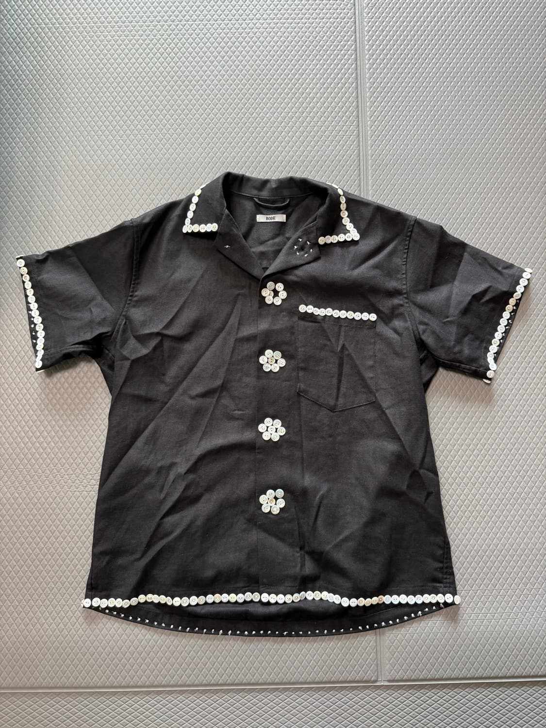 가슴 57 기장 65 모든 라이닝 부분에 담수(진주) 버튼이 꿰어져있습니다. 정말 유니크하고 멀리서보면 심플하나, 가까이서 보면 디테일이 미친 친구입니다. 발매가 1580불로 보디 셔츠류중에서도 가장 높은 리테일 가 였으며, 80에 매물로 구매하여 사이즈가 안맞아 보관만하다 판매합니다.